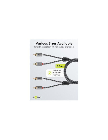 Kabel stereo RCA jest wyjątkowo krótki i ma 0,5 m, aby zapewnić najlepszą możliwą transmisję sygnału