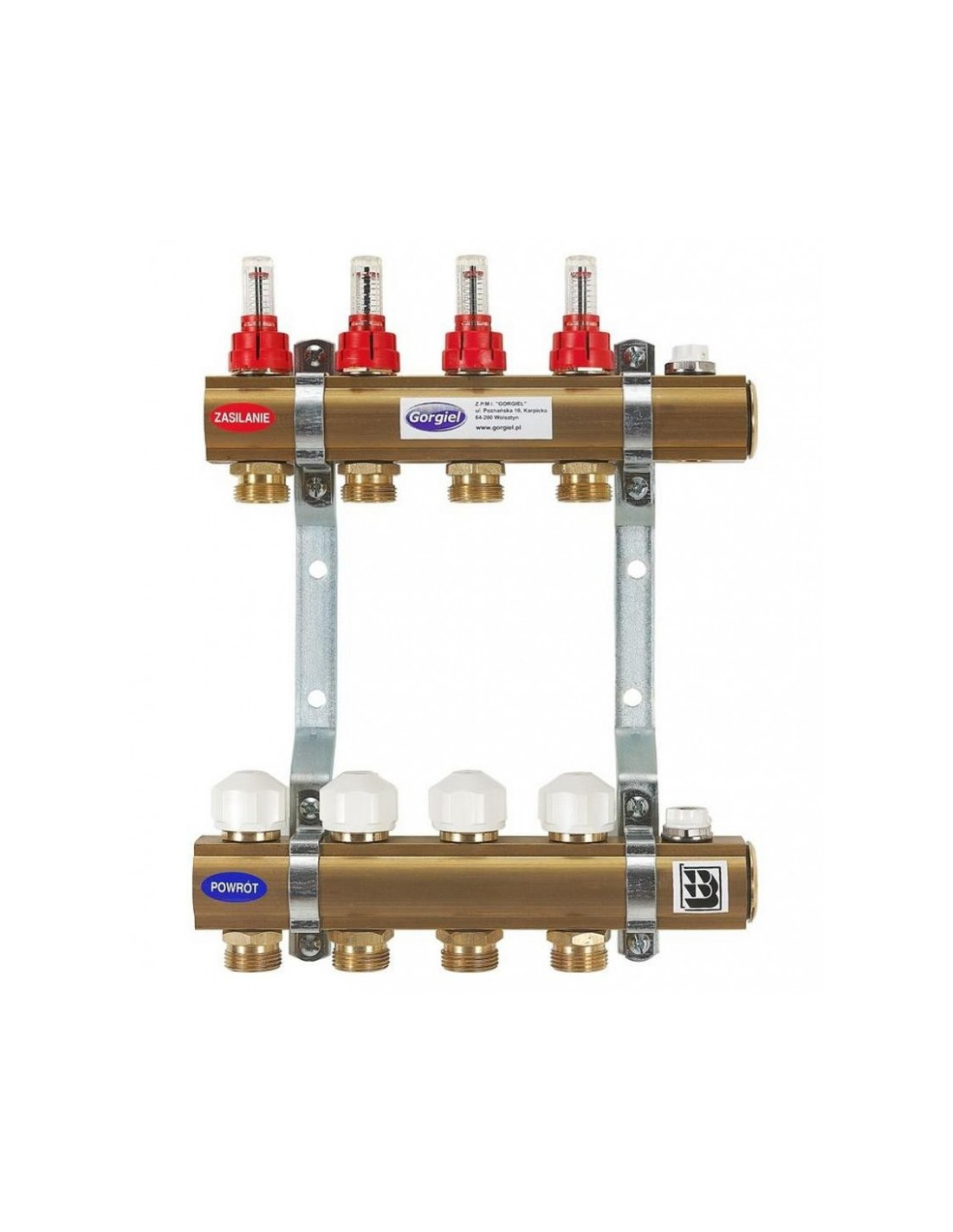 Rozdzielacz Uzbrojony Mosiądz R-Pt 13-Ob 1" Do Podłog. Z Miernikami Mosiadz