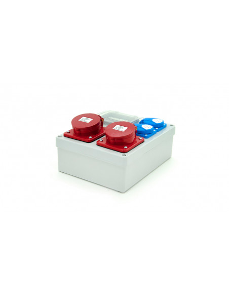 2 x gniazdo skośne z niklowanymi stykami 16A 5P 400V IP44 zabezpieczone B16 3P,