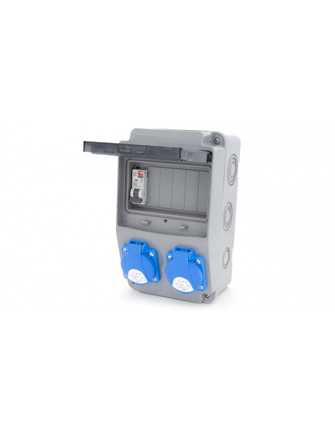 gniazda 230V posiadają klapki, zapewniające szczelność na poziomie IP54, co wpływa bezpośrednio na BEZPIECZEŃSTWO użytkowania rozdzielnicy,