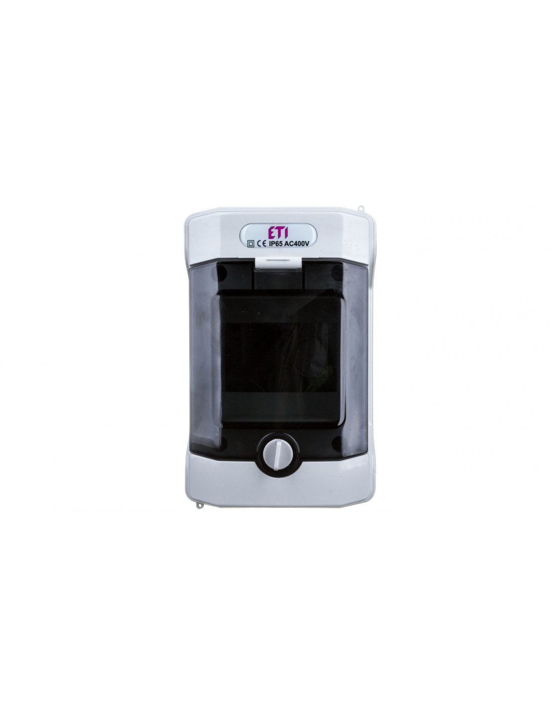 Powyższa rozdzielnica modułowa pochodzi od marki ETI-POLAM. Wykonano ją z wysokiej jakości tworzywa sztucznego w kolorze szarym. Urządzenie posiada jeden rząd i 4 moduły. Drzwi są przezroczyste, a pokrywa zamknięta. Producent zaleca wykonanie montażu powierzchniowego. Urządzenie charakteryzuje się wysokim stopniem ochrony IP65, który mówi o ochronie urządzenia na działanie wody, wilgoci, kurzu i pyłów, dzięki czemu z powodzeniem można ją wykorzystywać na zewnątrz budynków. Jej wysokość wynosi 201 mm, szerokość 128 mm, a głębokość 120 mm. Rozdzielnica nie posiada płyty montażowej. Istnieje możliwość rozbudowy urządzenia. Produkcją zajęła się marka ETI-POLAM. Firma od niemalże 20 lat istnieje na rynku elektromechanicznym i mimo krótkiego doświadczenia, zyskała zaufanie największych światowych koncernów. Aparatura ETI spełnia wszelkie normy bezpieczeństwa i posiada renomowane europejskie certyfikaty jakości. Firma ETI-POLAM zdobywa co roku wiele nagród związanych ze swoją prężną działalnością na rynku polskim. Jedną z najbardziej znanych jest Gazela Biznesu zdobywana już dwukrotnie.