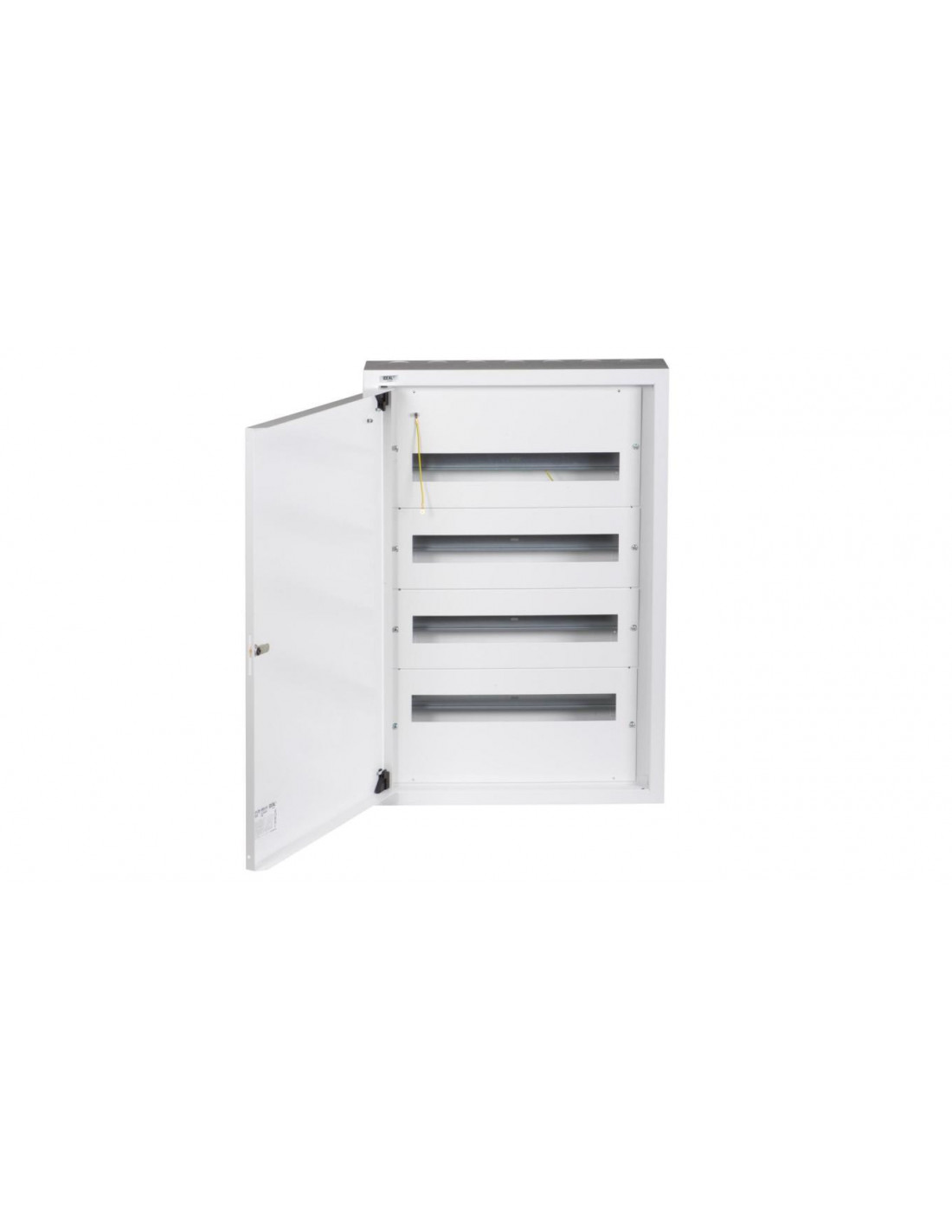 Rozdzielnica metalowa, Typ: DBA, Częstotliwość znamionowa [Hz]: 50, Długość [mm]: 485, Klasa ochronności przed porażeniem elektrycznym: I, Kolor: biały, Kolor drzwi: biały, Liczba modułów: 4x18P, Materiał: żelazo, Miejsce montażu: do nadbudowania na ścianie, Napięcie znamionowe [V]: 230/400 AC, Prąd znamionowy [A]: 63, Stopień IP: 30, Szerokość [mm]: 115, Wysokość [mm]: 715, Norma: PN-EN 62208, Liczba rzędów: 4, Kąt otwarcia drzwi [°]: 120.