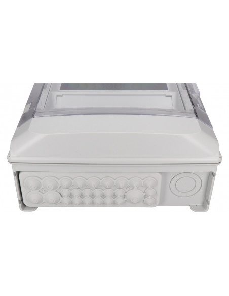 Rozdzielnica posiada otwory przelotowe dla dławnic kablowych M32/M50 oraz boczne otwory przelotowe dla M20 i M25 w części górnej i dolnej. Wejścia w górnej części obudowy są już zakryte nawet bez użycia osłony kabla, zapewniając tym samym estetyczny wygląd.