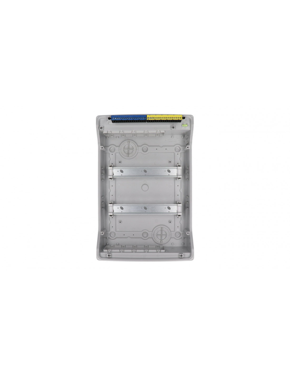 Seria rozdzielnic wyposażona jest w bez narzędziowy system zatrzaskowy do ustawiania szyn montażowych na 2 poziomach. Szyny montażowe można szybko i łatwo przesuwać ze standardowej wysokości montażowej 50 mm do 62 mm. W ten sposób marka NEPTUN oferuje również wystarczającą ilość miejsca na instalację głębiej położonych urządzeń montowanych na szynach i modułowych systemów zaciskowych.
