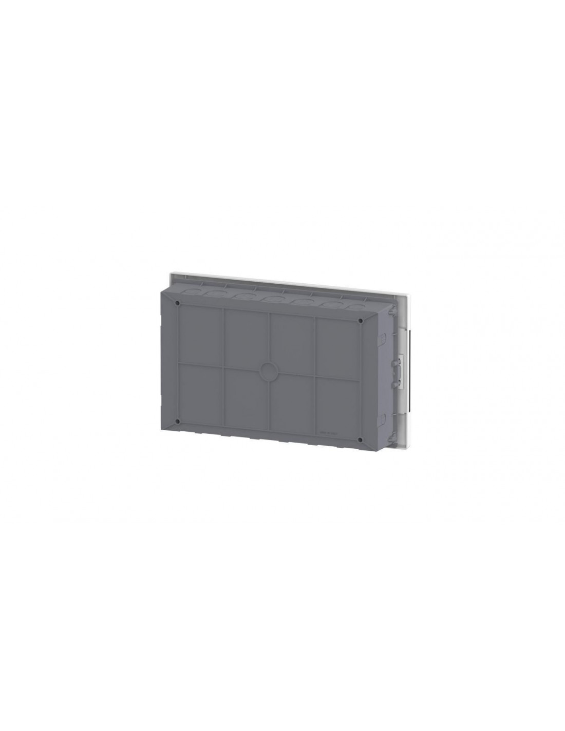 Easy9 EU to obudowa podtynkowa przeznaczona do aparatury modułowej przede wszystkim w budownictwie mieszkaniowym. Zawiera 1 rząd mieszczący 18 standardowych modułów w rozmiarze 18 mm. Można w niej umieścić wszystkie typy aparatury modułowej. Jest dostarczana z 1 uziemiającą i 1 neutralną listwą zaciskową z ich wspornikiem, a każda listwa zaciskowa ma 16 otworów (8x16mm² + 8x10mm²). Posiada odwracalne drzwi pełne w kolorze dymnym, o kącie otwarcia 180°. Kolor obudowy jest biały (RAL 9003). Obudowa dedykowana do montażu wewnątrz pomieszczeń. Stopień ochrony to IP40 przy drzwiach zamkniętych oraz IP30 przy drzwiach otwartych. Kable mogą być wprowadzane przez 4 boki obudowy poprzez osłabienia na rurki instalacyjne. Miejscem przeznaczenia są nowe lub remontowane instalacje w budynkach mieszkalnych. Wewnętrzne elementy obudowy to kaseta podtynkowa tylna, wyjmowany stelaż z szyną DIN oraz przednia pokrywa z wycięciem. Wymiary wynoszą: (W) 400 mm x (S) 245 mm x (G) 99 mm, szerokość wyrażona w modułach 18 mm wynosi: 36, obudowa waży 1,19 kg, Obudowa wykonana jest z samogasnącego tworzywa sztucznego. Odporność na płomienie i ciepło wynosi 650°C z czasem trwania 30 min, zgodnie z normą IEC 60695-2-10. Klasa izolacji elektrycznej to klasa II (podwójna izolacja). Stopień zanieczyszczenia wynosi 2. Zgodnie z normą IEC 62262 stopień ochrony IK to IK07. Temperatura pracy wynosi od -25°C do +60°C. Temperatura przechowywania wynosi od -25°C do +70°C. Obudowa jest zgodna z normą IEC 60670-1-24.