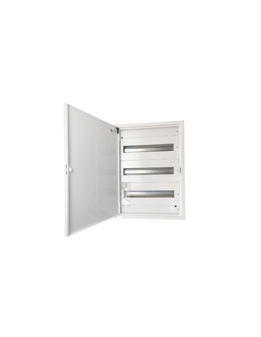 Wyposażona w trzy rzędy szyn DIN z możliwością instalacji 18 modułów na jednej szynie. Dno rozdzielnicy idealnie dopasowuje się do ściany.