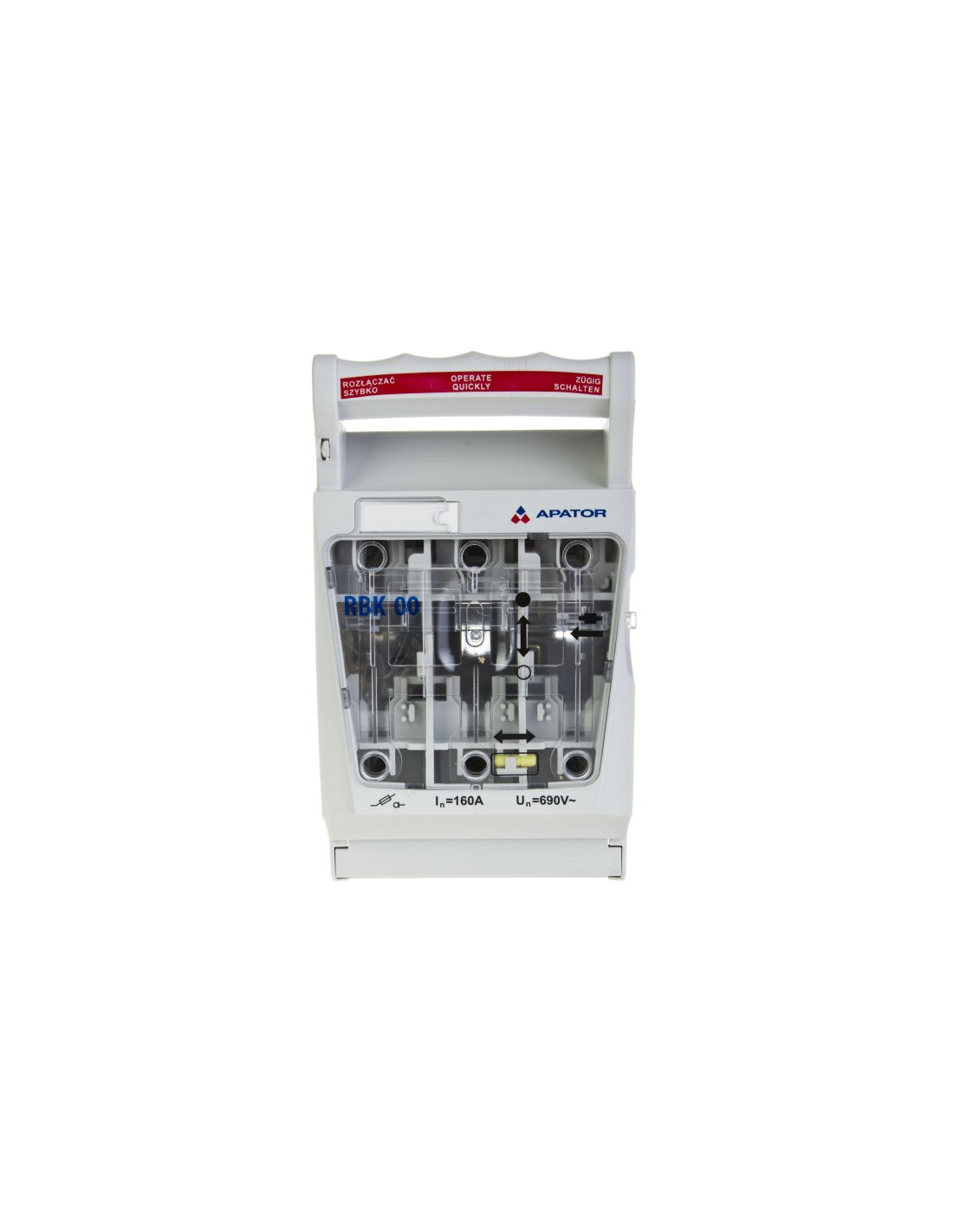 Rozłączniki bezpiecznikowe NH Rozłącznik izolacyjny bezpiecznikowy 160A RBK 00 pro-SG-M /zaciski śrubowe M8 do 70mm2/... APATOR TORUŃ SKU: 0002-00001-14821 576,46 zł 468,66 zł brutto netto DO KOSZYKA