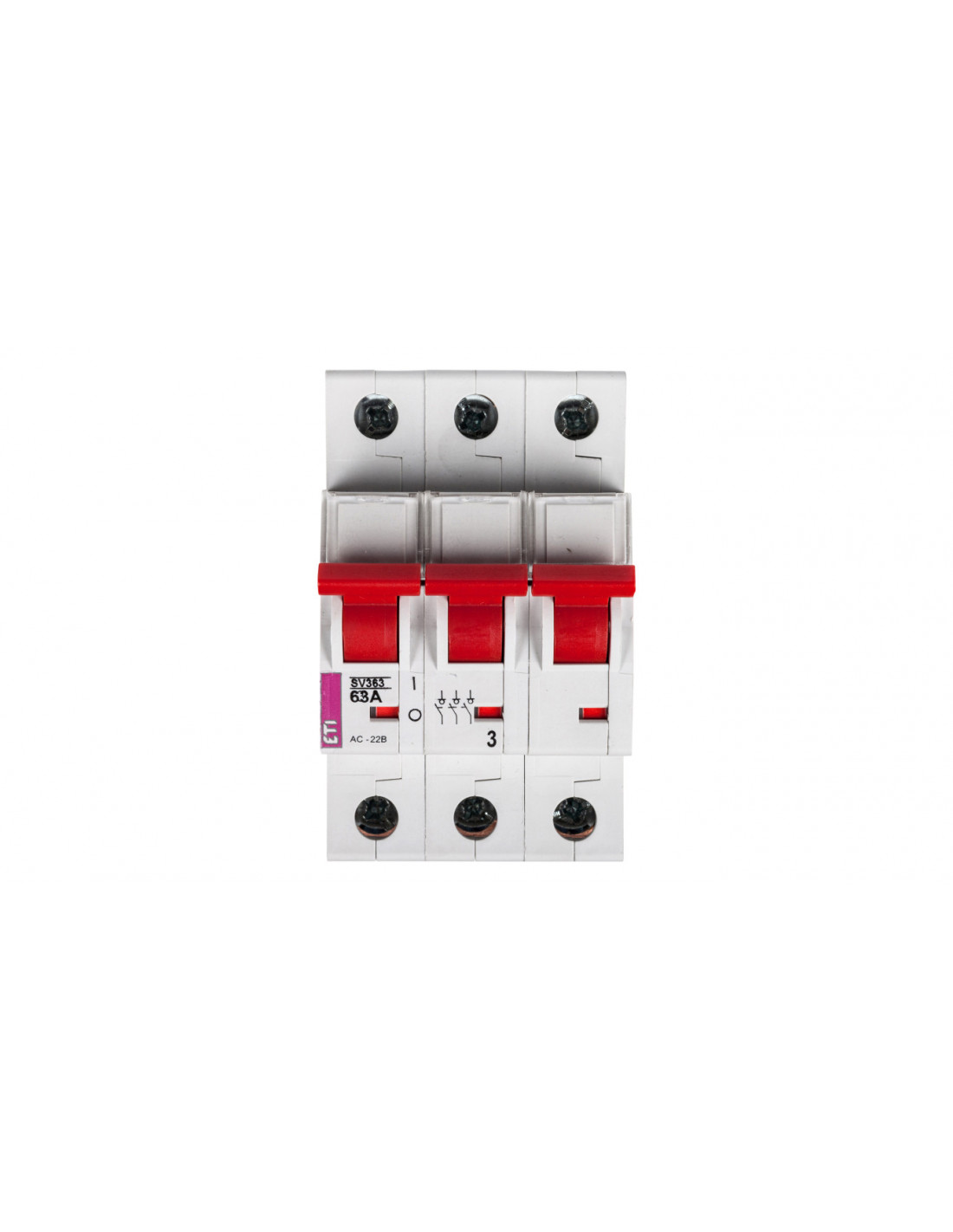 Rozłącznik modułowy cechuje napięcie znamionowe o wartości 400 V. Produkt posiada 3 moduły i 3 styki zwierne. Jest to typ rozłącznika izolacyjnego, stosowany jako wyłącznik główny w rozdzielnicach mieszkaniowych i przemysłowych. Produkt może być także używany jako indywidualny łącznik w instalacjach elektroenergetycznych. Rozłącznik modułowy nie posiada wbudowanych urządzeń nadprądowych. Może być plombowany zarówno w pozycji załączonej, jak i wyłączonej.