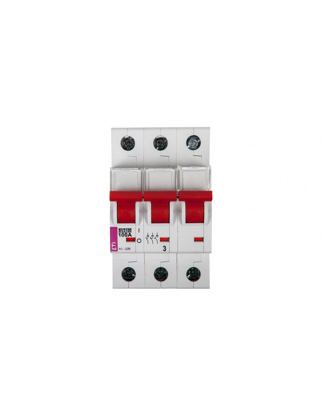 Rozłącznik modułowy ma znamionowe napięcie równe 400 V. Posiada 3 styki zwierne. Szerokość wyrażona liczbą modułów wynosi 3. Rozłącznik charakteryzuje prąd znamionowy o wartości 100 A.
