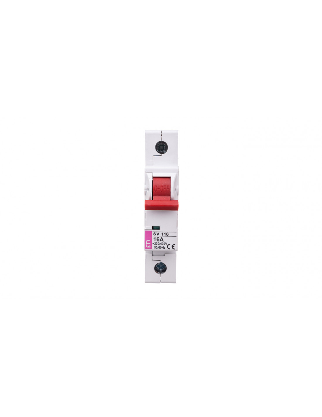 Powyższy rozłącznik modułowy wykonała polska marka ETI. Posiada on jeden biegun oraz jeden styk zwierny. Urządzenie posiada również jeden moduł, który świadczy o jego szerokości. Jego głębokość wbudowana wynosi 65 mm. Funkcję przełączającą pełni wyłącznik. Zarówno napięcie znamionowe 1, jak i 2 wynosi 230 V, natomiast prąd znamionowy jest równy 16 A. Cechuje go stopień ochrony IP20. Wskazuje on na to, iż rozłącznik posiada ochronę przed wnikaniem ciał obcych o średnicy 12 mm. Nie należy jednak wykorzystywać go na zewnątrz, gdzie może być narażony na wodę lub wilgoć. Firma jest jednym z wiodących producentów wyłączników nadprądowych i ochronnych różnicowoprądowych, bezpieczników topikowych wszystkich wielkości i charakterystyk, zarówno niskiego, jak i średniego napięcia, oraz ceramiki elektrotechnicznej itp. Od roku 2006 firma ETI Polam posiada Certyfikat Systemu Zarządzania Jakością ISO 9001 co obliguje firmę do ciągłego polepszania jakości swoich usług.