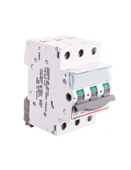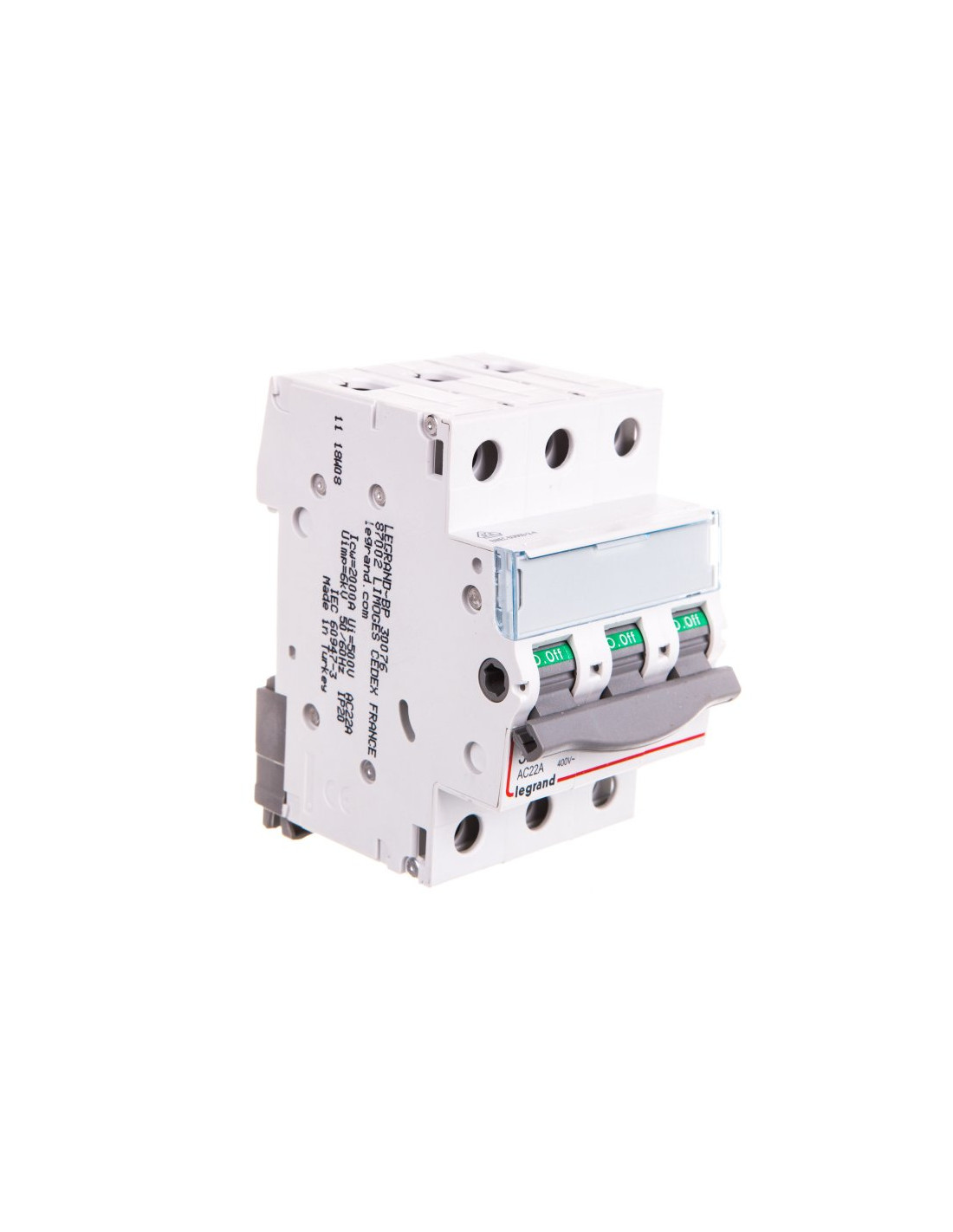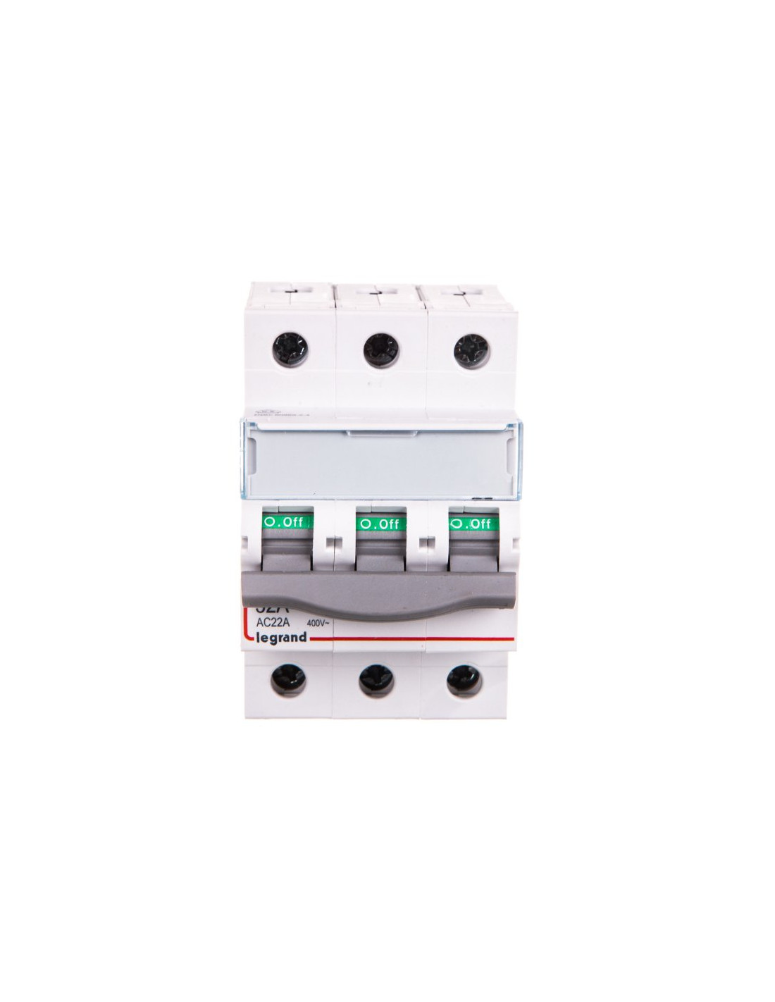 LEGRAND POLSKA jest częścią międzynarodowego koncernu, GRUPY LEGRAND, eksperta w zakresie produktów i systemów instalacji elektrycznych oraz sieci informatycznych w budownictwie mieszkaniowym, komercyjnym i przemysłowym. Wszystkie produkty spełniają wymogi norm, posiadają atesty i międzynarodowe certyfikaty potwierdzające ich wysoką jakość. Powyższy rozłącznik modułowy trójbiegunowy posiada dźwignię załączającą w kolorze szarym. Znamionowy prąd pracy wynosi 32 A. Napięcie znamionowe pracy wynosi 400 V AC. Szerokość aparatu wynosi trzy moduły, głębokość wbudowania 44 mm a stopień ochrony IP20. Kategoria pracy rozłącznika według norm IEC/EN 60947-3 wynosi AC 22 A. Istnieje możliwość wyposażenia rozłącznika w styk pomocniczy z serii DX3.
