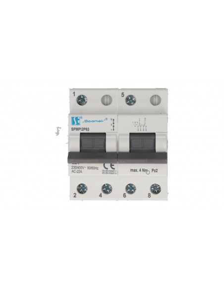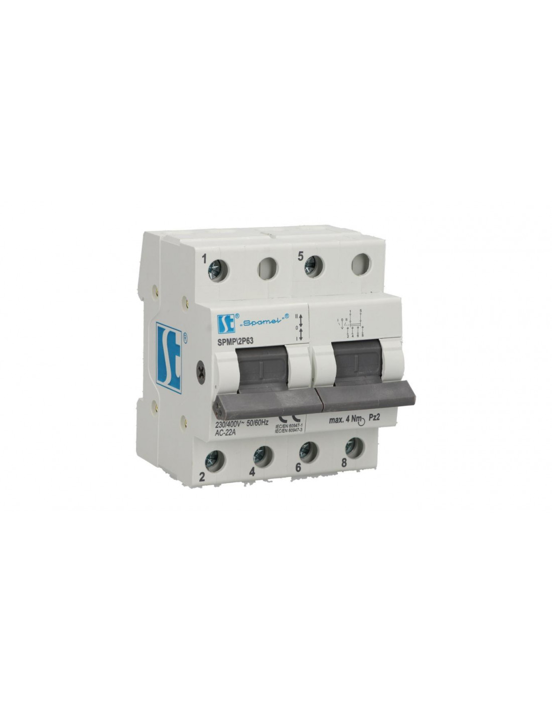 Modułowe przełączniki zasilania Sieć-Agregat I-0-II (1-0-2) SPMP - służą do ręcznego przełączania z zasilania głównego na zasilanie rezerwowe z agregatu prądotwórczego, zasilacza awaryjnego (UPS) lub innej alternatywnej sieci, zapewniając w ten sposób ciągłość dostarczania energii elektrycznej. Przełączniki SPMP mają pozycję „0” - w tej neutralnej pozycji zasilanie odbiornika (domu, mieszkania) jest wyłączone ze wszystkich źródeł zasilania (agregatu i głównego źródła zasilania). Wszystkie przełączniki mają standardowy montaż na szynie DIN TH35 mm i mogą być instalowane w rozdzielnicach oraz skrzynkach elektrycznych.