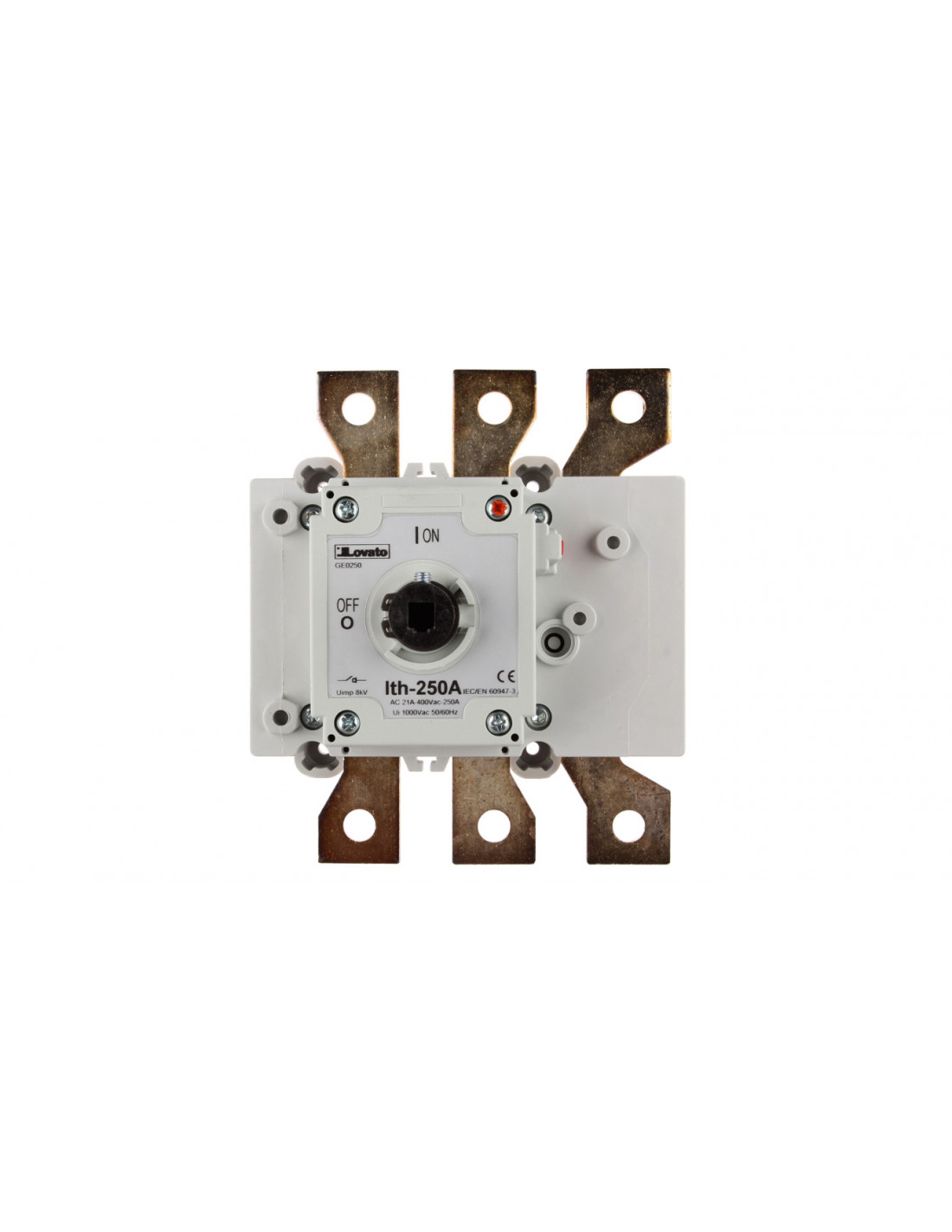 Rozłączniki izolacyjne marki Lovato to najwyższej jakości urządzenia trójbiegunowe. Artykuł wykonany w powyższej wersji może być stosowany jako rozłącznik główny. Urządzenie nie posiada pokrętła. Nadaje się do montażu płaskiego. Posiada przełącznik, za pomocą którego możliwa jest regulacja pracy urządzenia. Podłączenie do obwodu głównego jest możliwe za pomocą połączenia szynowego. Artykuł posiada niską odporność na działanie czynników zewnętrznych, o czym świadczy stopień ochrony oznaczony symbolem IP20. Symbol ten podpowiada, że korzystanie z aparatury powyższego typu na zewnątrz i w miejscach, gdzie będzie on narażony na wpływ wilgoci i zanieczyszczeń może przyczynić się do zmniejszenia efektywności pracy aparatu. Maksymalne znamionowe zmienne napięcie pracy sięga 690 V. Znamionowy prąd ciągły jest równy 250 A. Znamionowy warunkowy prąd zwarciowy wynosi 6 kA. Znamionowa moc pracy przy AC-23 i napięciu 400 V wynosi 110 kW. Lovato to włoska firma działająca na międzynarodowym rynku elektrycznym od 1922 roku. Doświadczenie i zdobyta w tym czasie wiedza przyczyniają się do udoskonalania produktów tej marki i dostosowywania ich do potrzeb użytkowników.