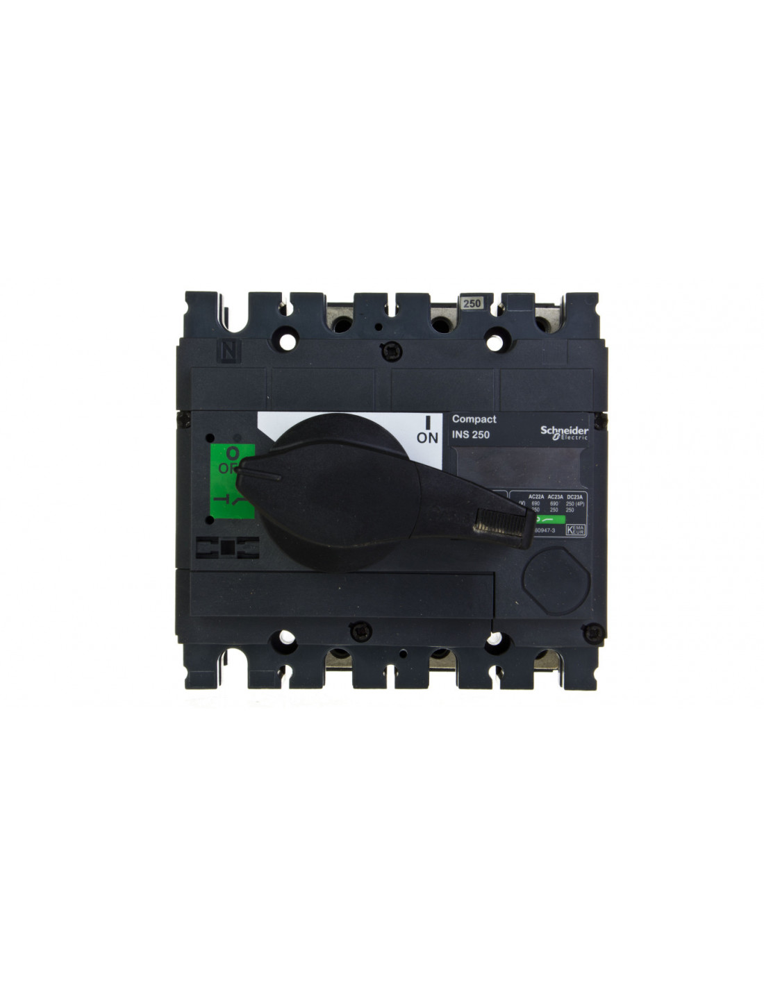 Rozłącznik izolacyjny marki SCHNEIDER ELECTRIC jest urządzeniem trójbiegunowym, posiadającym pokrętło służące do przełączania i regulowania urządzeniem. Wykonanie połączenia śrubowego będzie najłatwiejszym sposobem na podłączenie rozłącznika do obwodu głównego. Taki sposób instalacji zaleca także producent. Stopień ochrony IP40 świadczy o średniej odporności na wpływ ciał obcych do wnętrza produktu oraz o całkowitym braku odporności na działanie wilgoci. Urządzenie jest odpowiednie do tablic rozdzielczych. Może być też wykorzystywane jako rozłącznik główny. Znamionowy prąd ciągły to 250 A, natomiast znamionowy warunkowy prąd zwarciowy sięga 20 kA. Maksymalne znamionowe napięcie pracy dla prądu zmiennego to 690 V. Rozłącznik umieszczono w kolekcji Compact NS/INS, w której można także znaleźć adapter montażowy na szynę, blok wyzwalacza oraz napęd drzwiowy. Marka SCHNEIDER ELECTRIC jest jedną z najbardziej znanych i cenionych w branży elektronicznej. Producent zajmuje się produkcją aparatury tego typu od początku XX wieku. Wcześniej zdobywał doświadczenie w hutnictwie i przemyśle.
