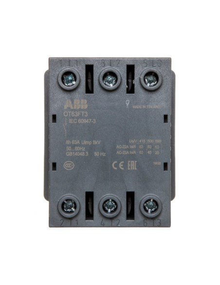 Firma ABB oddaje w ręce swoich klientów najwyższej jakości urządzenia elektroenergetyczne, wśród których znaleźć można między innymi wyłączniki, przełączniki, przekaźniki i rozłączniki izolacyjne. Te ostatnie to artykuły trójbiegunowe. Powyższy model rozłącznika jest w stanie pracować jako rozłącznik główny. Urządzenie to powinno być stosowane zgodnie z zaleceniami producenta, czyli w pomieszczeniach zamkniętych, w których nie występują zanieczyszczenia i woda. Jak informuje symbol IP20, czynniki te mogłyby mieć niekorzystny wpływ na dalsza pracę aparatury. Sprzęt tego typu jest przeznaczony do mocowania na stałe. Przy obwodzie głównym zamontujemy go bez większych problemów. Wystarczy bowiem w tym celu wykorzystać śruby mocujące, z którymi miał już do czynienia nawet początkujący elektromonter. Pracę rozłącznika można regulować za pomocą dźwigni, w którą wyposażono artykuł. Znamionowy prąd ciągły aparatury wynosi 63 A. Maksymalna wartość znamionowa zmiennego napięcia może sięga 750 V.