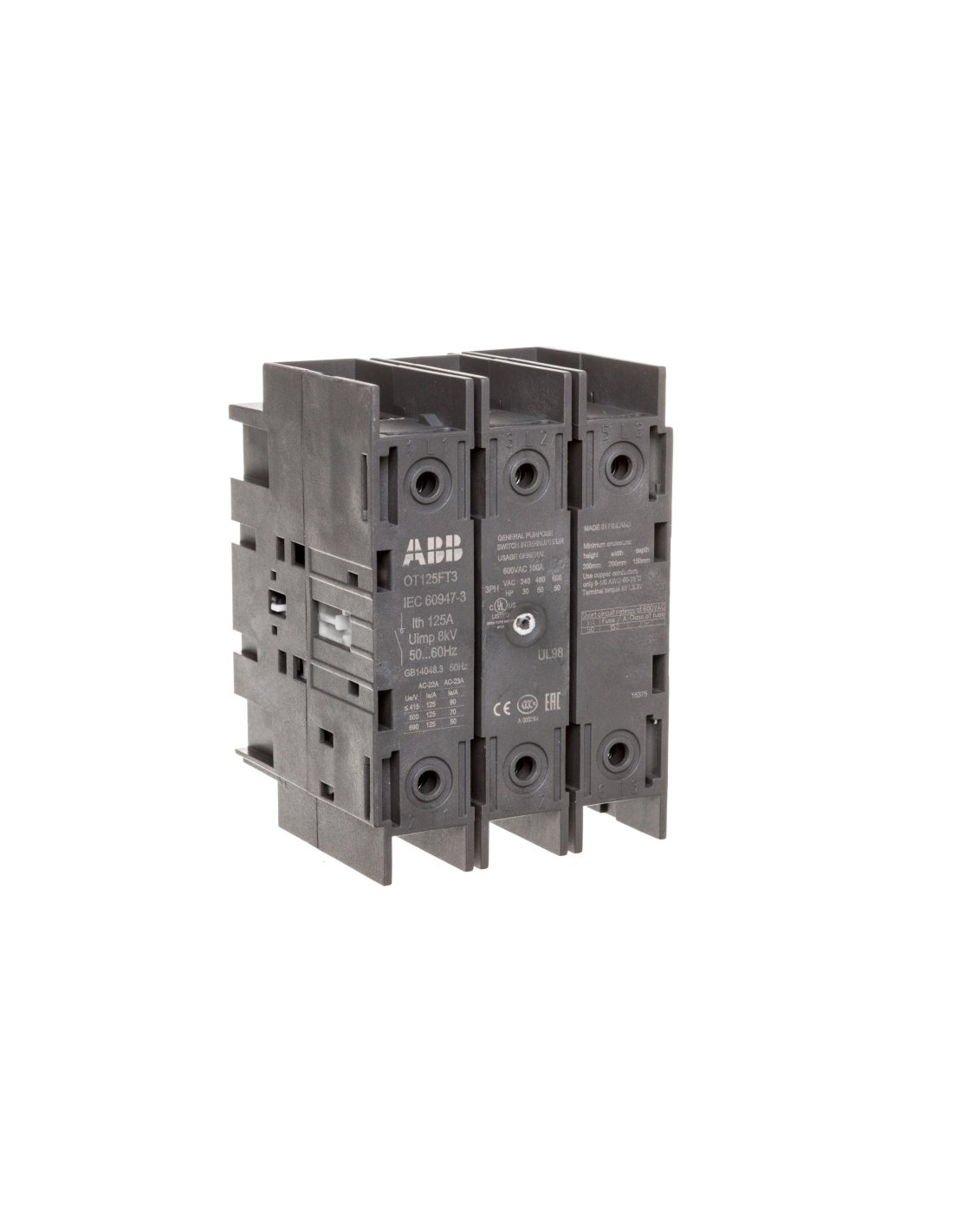 Rozłącznik izolacyjny marki ABB jest najwyższej jakości urządzeniem trójbiegunowym, który może pełnić funkcje nie tylko izolacyjne i zabezpieczające, ale także może występować jako rozłącznik główny. Produkt nie posiada napędu do wbudowania. Artykuł jest przeznaczony do montażu na stałe, którego można dokonać przy użyciu prostych w obsłudze śrub mocujących. Poradzi sobie z nimi zarówno początkujący, jak i doświadczony już użytkownik. Artykuł został wyposażony w dźwignię, za pomocą której można regulować pracę urządzenia. Maksymalne znamionowe napięcie pracy rozłącznika izolacyjnego przy prądzie zmiennym może wynosić 750 V. Znamionowa moc pracy urządzenia dla AC-23 i napięcia równego 400 V wynosi 45 kW. Produkt tego typu został wykonany z najwyższej jakości materiałów, jednak nie jest wystarczająco odporny na działanie czynników zewnętrznych, jak wilgoć, pył i kurz, dlatego rozłącznik powinien być zainstalowany w pomieszczeniu, w którym nie występują te związki. Świadczy o tym stopień ochrony oznaczony sygnaturą IP20.