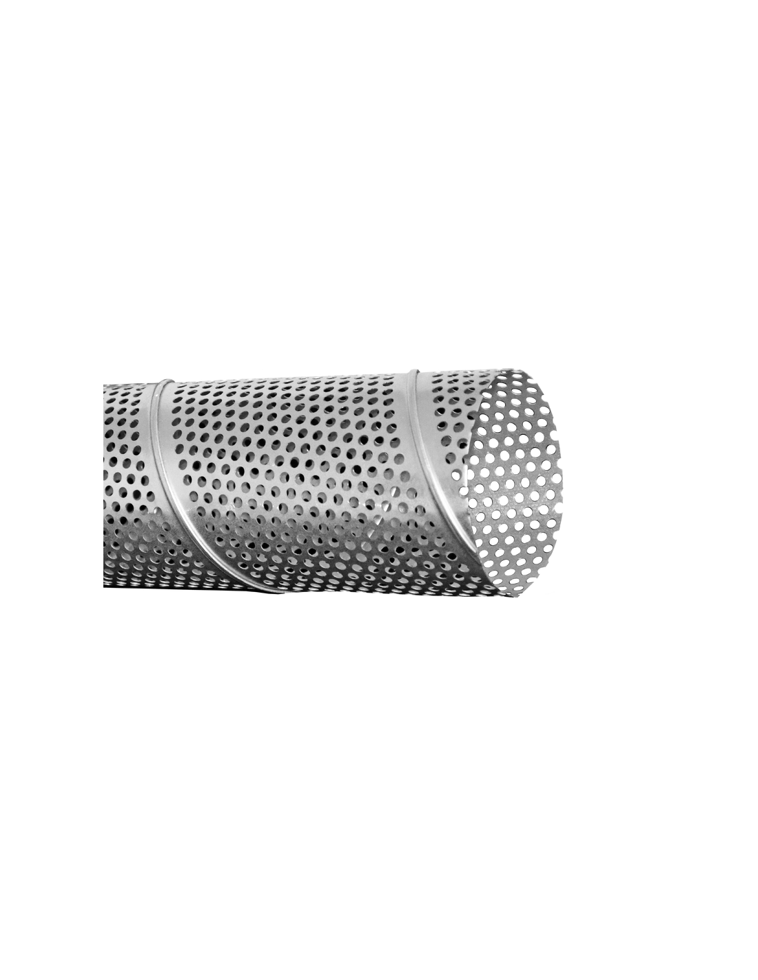 Spiralne kanały okrągłe perforowane produkowane w średnicy od 80 do 630, od średnicy 250 mm wyposażone są w zewnętrzne karby zwiększające sztywność i wytrzymałośćna podciśnienie. Kształt, układ i wielkość otworów: RV 5x8(otwory okrągłe 5mm w układzie mijanym o rozstawie 8mm).