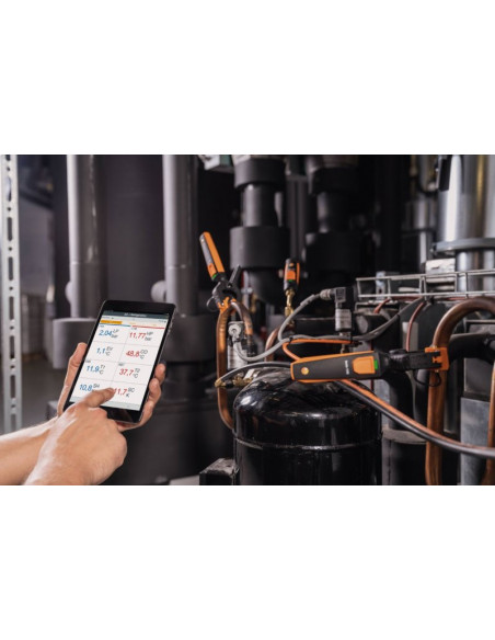 Termometr testo 115i (sonda zaciskowa) łączy się bezprzewodowo ze smartfonem lub tabletem, jest profesjonalnym przyrządem do pomiaru temperatury powierzchni w ogrzewnictwie, chłodnictwie i sektorze wentylacyjnym. Może być stosowany do pomiaru temperatury zasilania i powrotu w instalacjach grzewczych.
