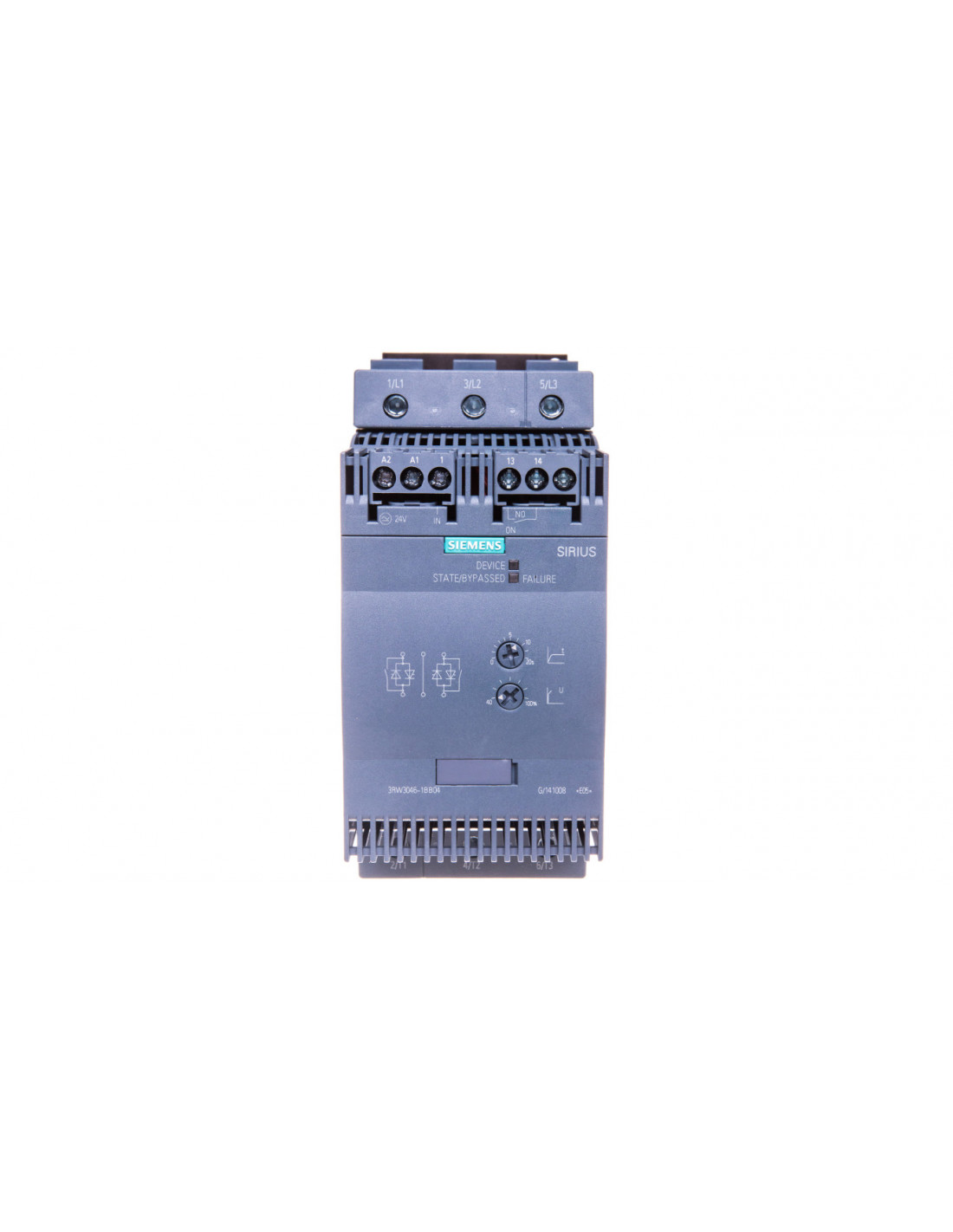 Softstartu 3-fazowego używa się, aby zapewnić łagodny rozruch silników w urządzeniach, które do swojego działania potrzebują dużej mocy. Przy podłączeniu standardowym softstartu i napięciu 400 V znamionowa moc silnika trójfazowego powinna wynosić 45 kW. Znamionowy prąd pracy w temperaturze otoczenia 40 °C ma wartość 80 A, natomiast znamionowe napięcie pracy mieści się w zakresie od 200 V do 480 V. Urządzenie pracuje, zarówno przy stałym, jak i zmiennym napięciu sterowniczym, którego wartość wynosi 24 V. Softstart należy do serii SIRIUS oferującej także styczniki, przekaźniki czasowe, przyciski sterownicze czy wyłączniki krańcowe, a wiec aparaturę do łączenia, ochrony i rozruchu obciążeń, a także monitorowania, kontroli, wykrywania, detekcji, sygnalizacji i zasilania. Producentem jest firma Siemens oferująca wysokiej klasy urządzenia pozwalające na budowę niezawodnych systemów sterowania, posiadające wszelkie niezbędne atesty.