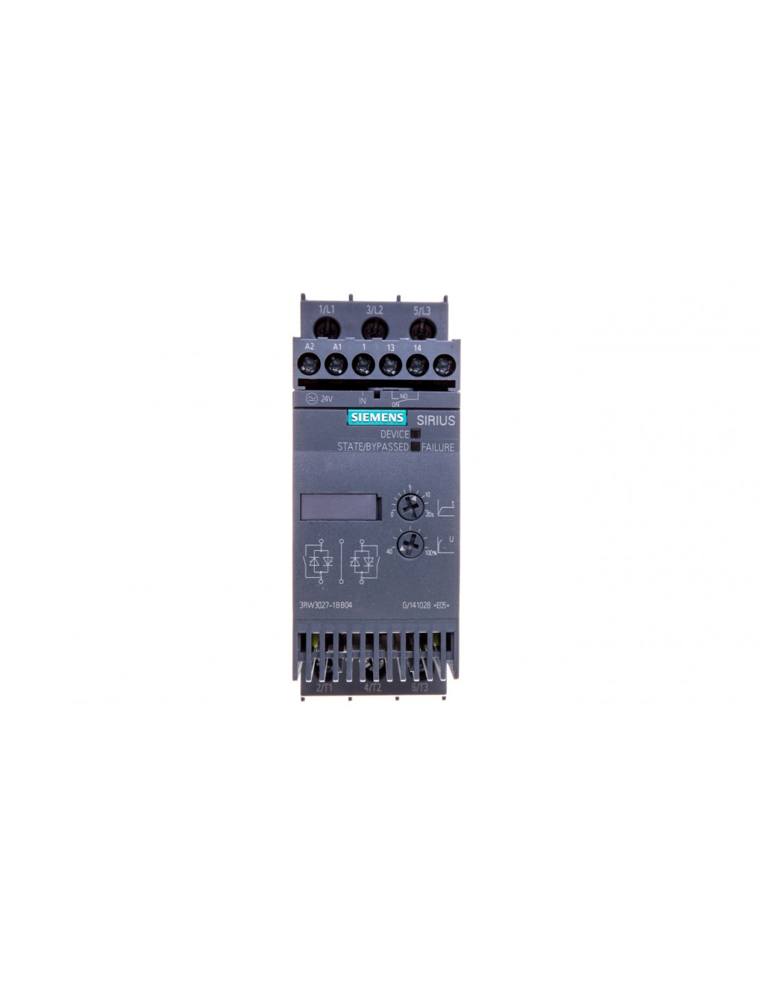 Softstart 3-fazowy o wielkości S0 jest dostosowany do pracy zarówno przy stałym, jak i zmiennym napięciu sterowniczym. Znamionowe napięcie starowania dla AC przy częstotliwości 50 Hz oraz przy częstotliwości 60 Hz wynosi 24 V. Znamionowe napięcie sterowania dla DC wynosi także 24 V.Znamionowe napięcie pracy wynosi do 480 V. Znamionowe napięcie robocze wynosi od 200 V do 480 V. Znamionowy prąd pracy w 40 °C wynosi 32 A. Znamionowa moc silnika trójfazowego przy podłączeniu standardowym przy napięciu 230 V wynosi 7 kw, natomiast przy 400 V wynosi 15 kW. Softstart służy do ograniczenia udaru prądowego w momencie wyłączania urządzeń elektrycznych. Stosuje się go w układzie zasilania urządzeń dużej mocy, które w momencie rozruchu pobierają prąd wielokrotnie przewyższający prąd znamionowy, głównie silników elektrycznych, lamp halogenowych, prostowników z kondensatorami o dużej pojemności i innych urządzeń. Softstart został wyprodukowany przez firmę Siemens, należy do rodziny produktów SIRIUS, której wszystkie produkty cechują się dużą wytrzymałością i kompaktową budową.