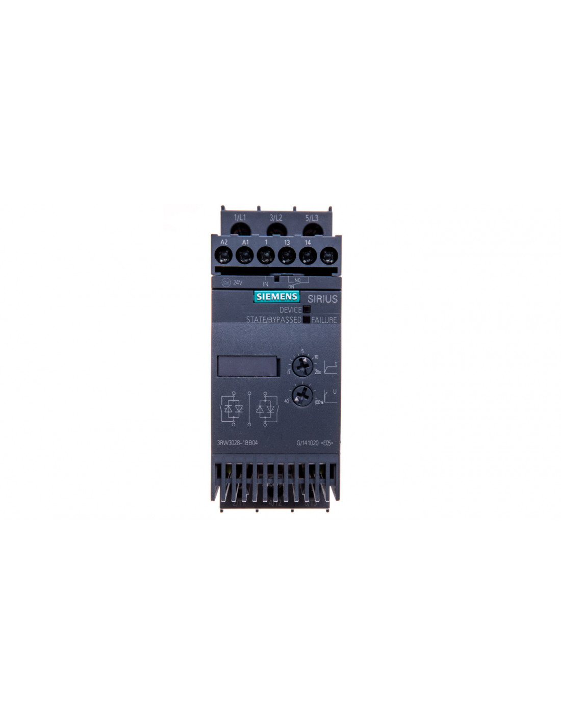 Softstart 3RW30 o rozmiarze S0 to nowoczesny aparat, który znajduje swoje zastosowanie w łagodnym rozruchu oraz zatrzymywaniu trójfazowych silników asynchronicznych. Poprzez dwufazowe sterowanie prąd we wszystkich 3 fazach jest podtrzymywany na najniższym poziomie przez cały czas rozruchu. Co więcej, impulsowe wzrosty prądu i momentu są minimalizowane dzięki stałej regulacji napięcia. Softtstart 3-fazowy z powodzeniem może być wykorzystywany przez profesjonalistów w przenośnikach ślimakowych, urządzeniach transportowych, pompach hydraulicznych, prasach oraz w schodach ruchomych. Urządzenie zostało dostosowane do silników zasilanych napięciem AC i DC, których znamionowa moc przy 230 V ma wartość 9 kW, a przy 400 V wynosi ona 18,5 kW. W produkcie znamionowe napięcie sterowania jest równe 24 V. Prawidłowa praca softstartu będzie przebiagać przy prądzie le w 40°C Tu wynoszącym 38 A oraz przy znamionowym napięciu roboczym z zakresu od 200 V do 480 V. Urządzenie 3RW30 pochodzi z innowacyjnej serii SIRIUS i zostało wyprodukowane przez renomowaną markę SIEMENS, której produkty wyróżniają się długim i niezawodnym działaniem.