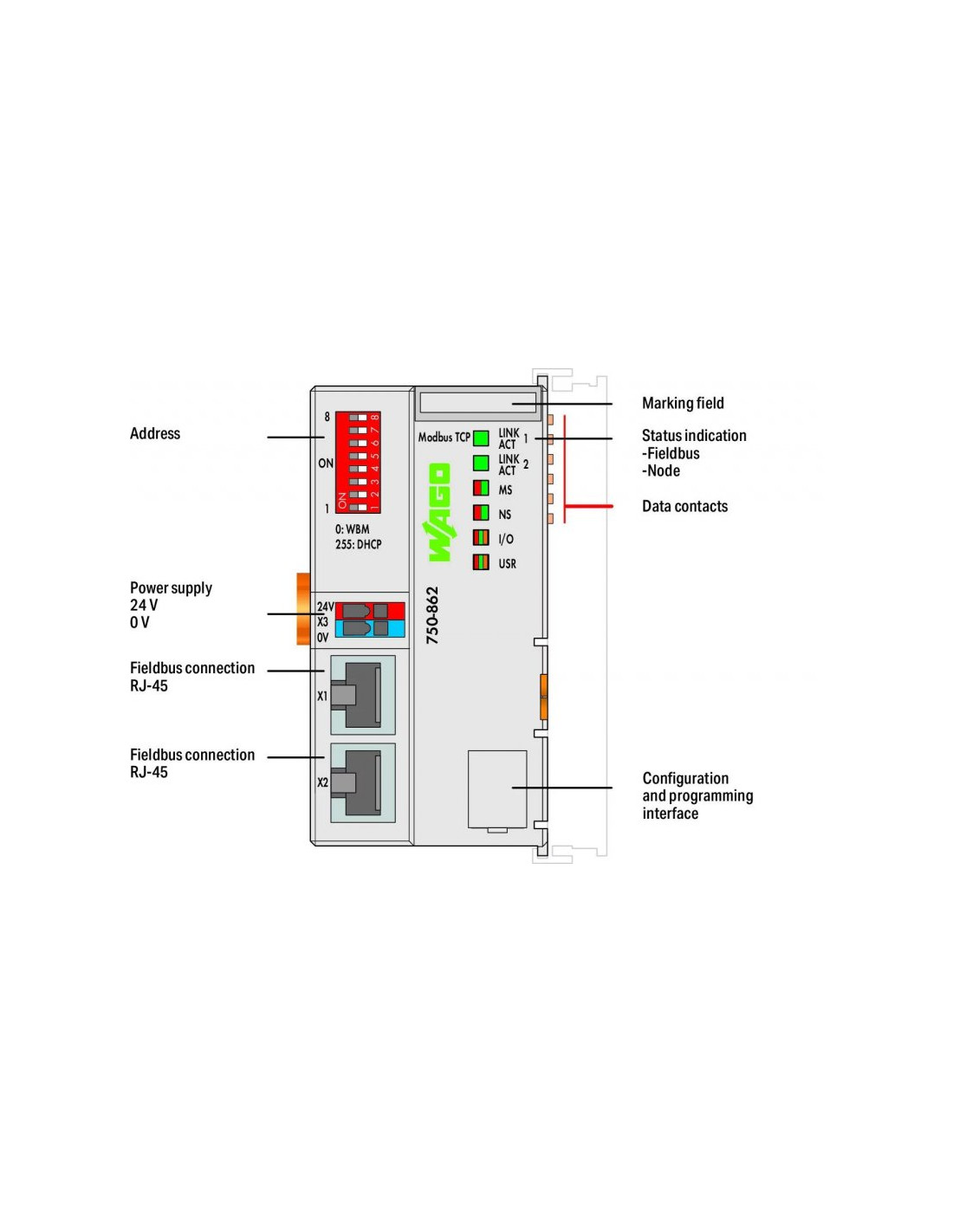 Sterownik Modbus TCP 4 generacja 2 x ETHERNET ECO jasnoszary 750-862