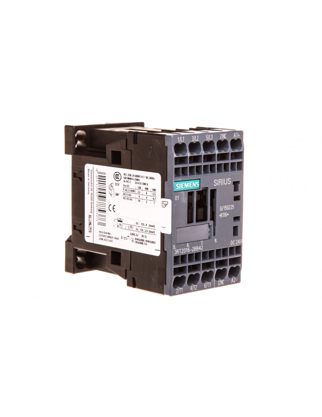 SIEMENS jest liderem w branży techonologicznej na świecie. Wyprodukowane przez tą firmę urządzenia udostępnia już od ponad 160 lat. Dzięki temu doświadczeniu firma doskonale zna potrzeby i wymagania klientów, dlatego ciągle pracuje nad udoskonalaniem urządzeń i poddaje je licznym testom sprawdzajacym. Seria SIRIUS marki SIEMENS w swoim asortymencie zawiera aparaty łączeniowe. Są to wyłączniki silnikowe, softstarty, przełączniki przeciążeniowe oraz styczniki mocy. Powyższy model stycznika mocy wykonano w wersji 3-biegunowej. Wyposażono go w trzy styki główne zwierne oraz jeden styk pomocniczy rozwierny. Znamionowa moc jego pracy przy AC-3 i napięciu 400 V wynosi 4 kW. Znamionowy prąd pracy z kolei przy AC-3 i 400 V to 9 A. Natomiast znamionowe napięcie sterowania stycznika dla prądu stałego jest równe 24 V. Stycznik mocy nie został stworzony w wersji modułowej. Jego instalacja nie jest trudna. Wystarczy użyć zacisku sprężynowego. Urządzenie dostępne jest w rozmiarze S00. Styczniki marki SIEMENS dostępne są w różnych wariantach wymiarowych: od S00 do S12. Dzięki temu dopasowanie odpowiadającego naszym potrzebom sprzętu nie jest trudne. W zależności od sprzętu, do jakiego ma być podłączony stycznik możemy wybrać właściwy jego rozmiar.