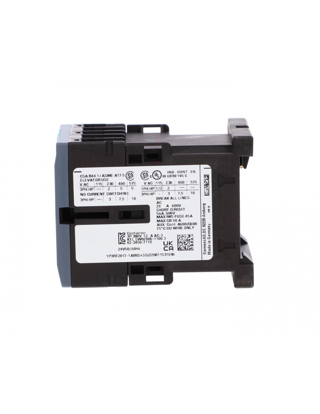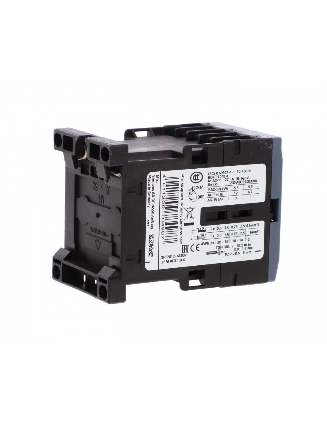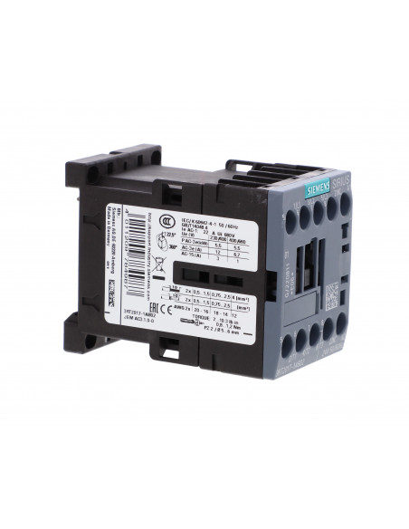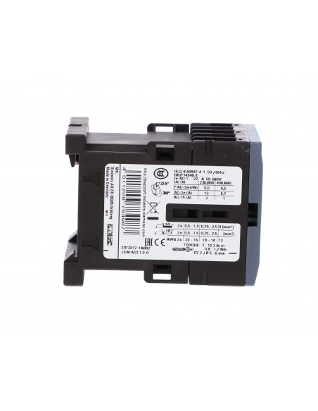 Stycznik mocy 12A 3P 24V AC 0Z 1R S00 3RT2017-1AB02