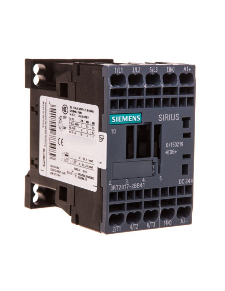 Stycznik mocy to urządzenie, które służy do załączania silników. Znajdziemy je w kolekcji SIRIUS firmy Siemens, która posiada wiele podobnych urządzeń, dzięki którym stworzymy niezawodne systemy sterowania. Posiada on jeden styk pomocniczy zwierny, nie ma styków pomocniczych rozwiernych. Urządzenie działa przy stałym napięciu sterownia, a znamionowe napięcie sterowania dochodzi do 24 V. Wytworzono go w najmniejszym z dostępnych rozmiarów - S00. Powyższy aparat posiada trzy bieguny. Znamionowy prąd pracy w tym styczniku przy AC-3 i napięciu 400 V wynosi 12 A, natomiast znamionowa moc pracy przy tym samym napięciu wynosi 5,5 kW. Aparat posiada trzy styki główne zwierne, nie ma jednak głównych rozwiernych. Podłączymy go do obwodu głównego przy pomocy zacisku sprężynowego. Siemens jest liderem w branży przemysłowej, energetycznej i elektrotechnicznej. Działa również w innych gałęziach biznesu jak opieka zdrowotna czy infrastruktura. Produkuje urządzenia, które są energooszczędne i nie wpływają negatywnie na środowisko naturalne.