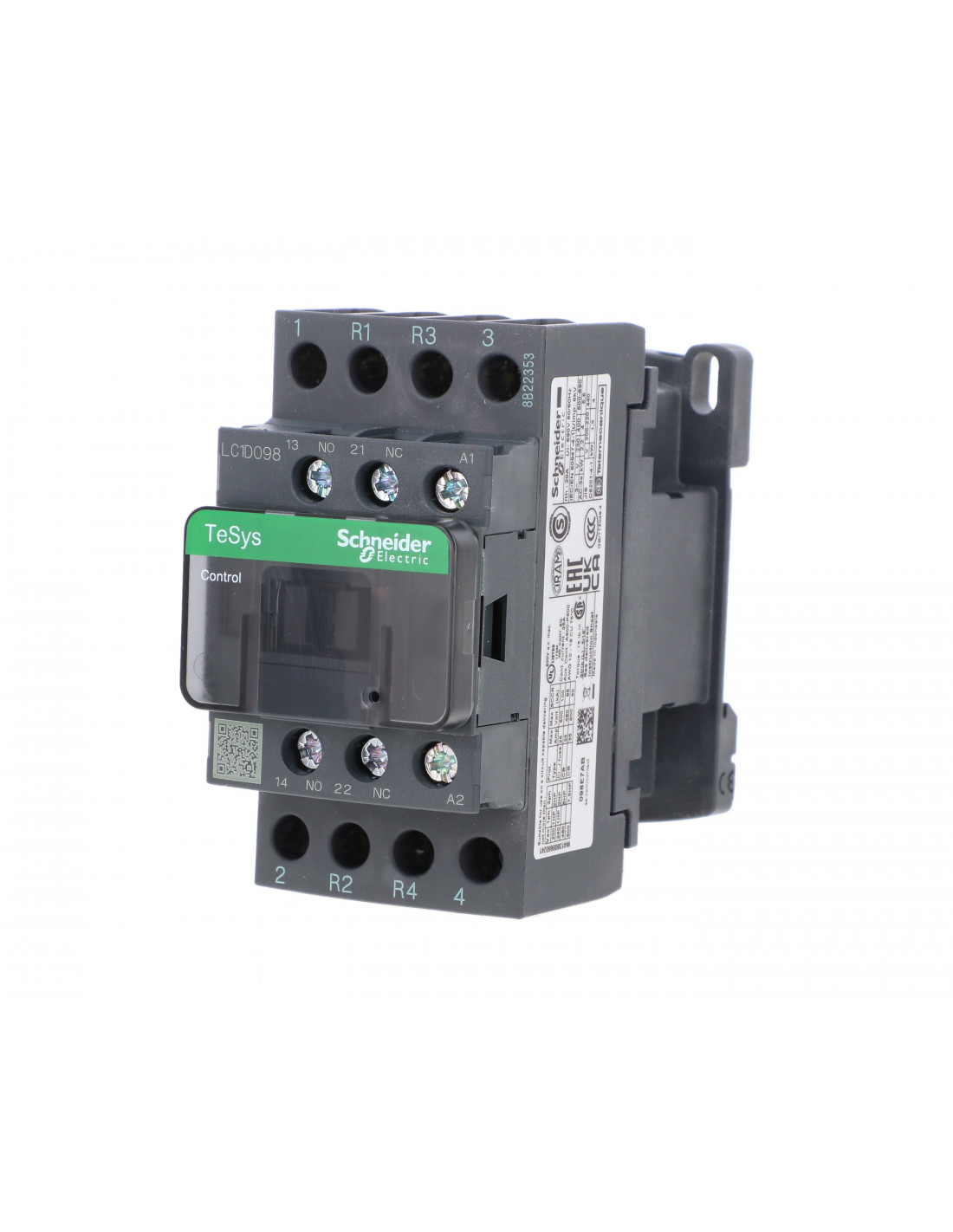 Styki mocy dla styczników LC1D09 do LC1D18 są wykonane z 90% srebra i 10% niklu; styczniki od LC1D25 i wyżej mają skład 88% srebra i 12% tlenku cyny.