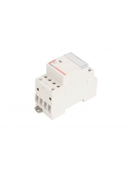 LEGRAND POLSKA jest częścią międzynarodowego koncernu, GRUPY LEGRAND, eksperta w zakresie produktów i systemów instalacji elektrycznych oraz sieci informatycznych w budownictwie mieszkaniowym, komercyjnym i przemysłowym. Wszystkie produkty spełniają wymogi norm, posiadają atesty i międzynarodowe certyfikaty potwierdzające ich wysoką jakość. Powyższy stycznik modułowy posiada cztery styki zwierne i ma szerokość dwóch modułów. Głębokość wbudowania wynosi 44 mm. Stycznik nie posiada manipulatora do obsługi manualnej. Zarówno napięcie sterowania jak i zasilania wykorzystuje prąd zmienny. Znamionowe napięcie cewki w tym styczniku dochodzi do 230 V, natomiast znamionowe napięcie pracy dochodzi do 400 V. Stopień ochrony IP2X. Znamionowy prąd pracy może dojść do 25 A. Maksymalna zdolność łączeniowa dla świetlówek wynosi 1540 VA (z kompensacją równoległą 980 VA), natomiast maksymalna zdolność łączeniowa dla żarówek wynosi 3000 W. Kategoria użytkowania została określona na AC-1. Istnieje możliwość dodatkowego wyposażenia urządzenia w styk pomocniczy.