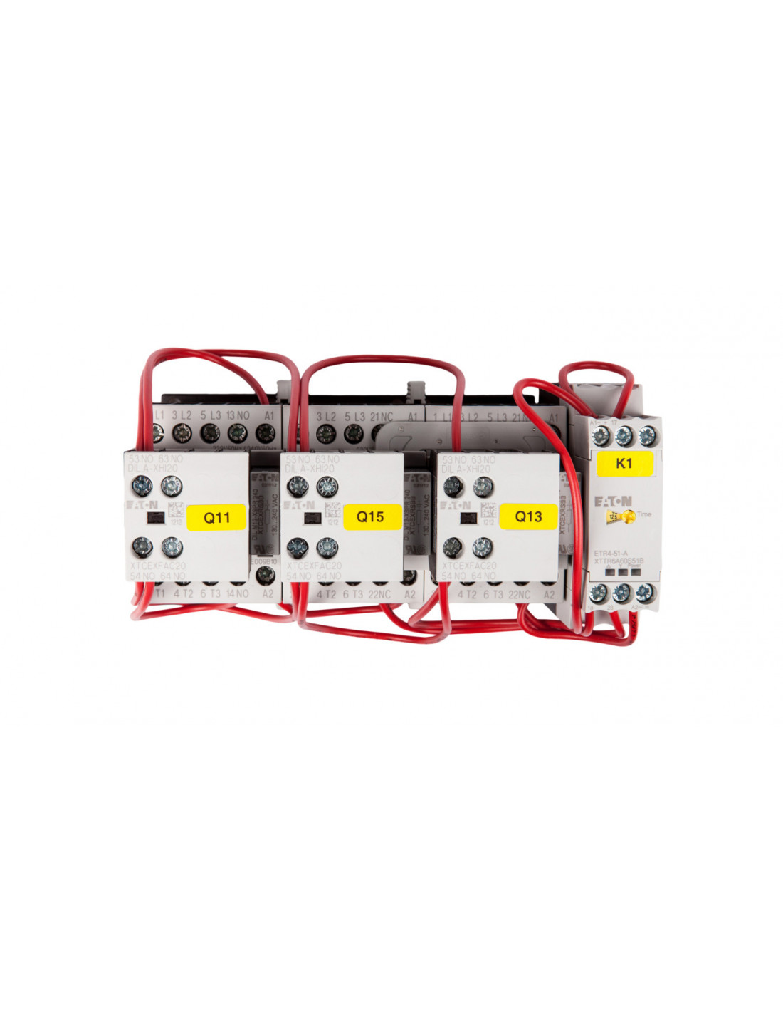 Układ gwiazda-trójkąt, pochodzący z oferty katalogowej firmy EATON ELECTRIC to urządzenie, którego zaletą jest skuteczne obniżenie działania prądów udarowych. Ich wysoka wartość mogłaby doprowadzić do awarii i trwałych uszkodzeń silnika. Produkt z serii SDAINL wyposażony jest w 3 styczniki, styki pomocnicze oraz przekaźnik czasowy. Znamionowe napięcie sterowania Us dla AC przy częstotliwości 50 Hz wynosi 230 V, a przy częstotliwości 60 Hz - 240 V. Urządzenie posiada stopień ochrony IP20. Jego znamionowa moc pracy przy AC-3, 400 V sięga 7,5 kW.