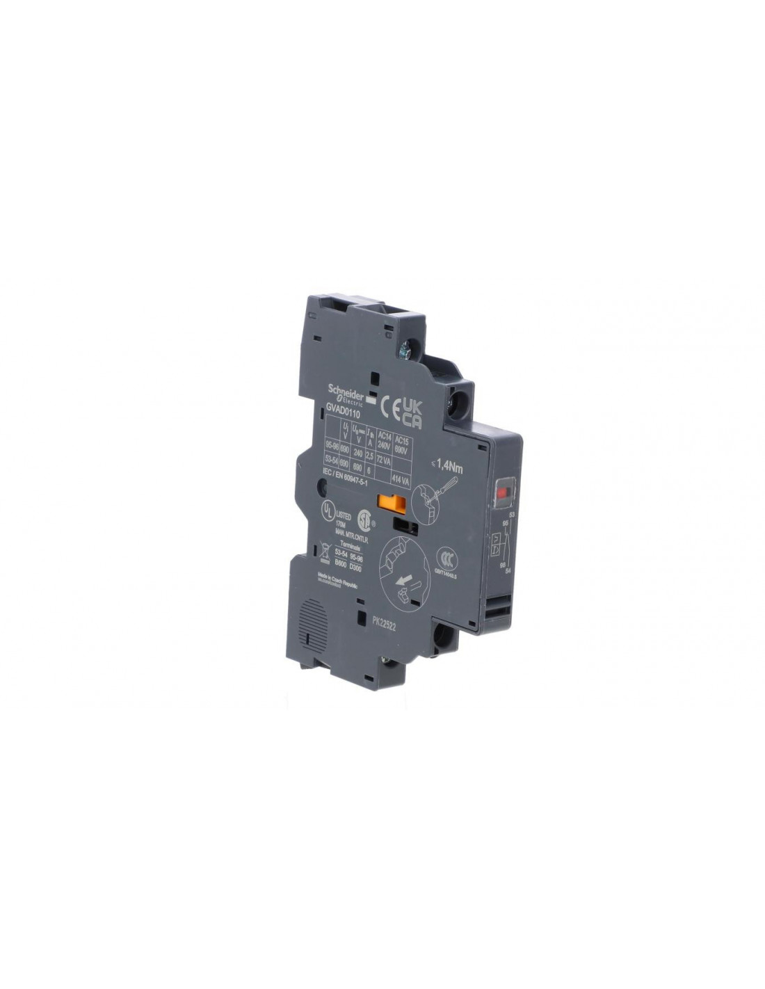 Styk pomocniczy marki SCHNEIDER ELECTRIC jest jednym z elementów bogatej oferty serii TeSys. Można w niej znaleźć m.in. blok nawrotny, adapter do cewki modernizacyjnej, adapter na szynę oraz styczniki mocy. SCHNEIDER ELECTRIC - firma będąca wytwórcą tego rodzaju urządzeń - jest uznawana za jednego z liderów w dziedzinie rozdziału energii elektrycznej. Swoją działalność prowadzi od 1836 roku, kiedy to została powołana do życia. Styk pomocniczy powyższej wersji ma po jednym styku zwiernym i rozwiernym. Przeznaczony jest do pracy z wyłącznikiem silnikowym. Urządzenie należy zamontować w sposób boczny za pomocą połączenia śrubowego, którego wykonanie nie sprawi problemu nawet niedoświadczonemu jeszcze użytkownikowi. Styk nie pracuje w połączeniu z elementem czołowym, przekaźnikiem modułowym, przełącznikiem wiszącym i rozłącznikiem mocy. Aparat ten, podobnie jak inne sprzęty tej marki, przechodzą szereg testów sprawdzających.