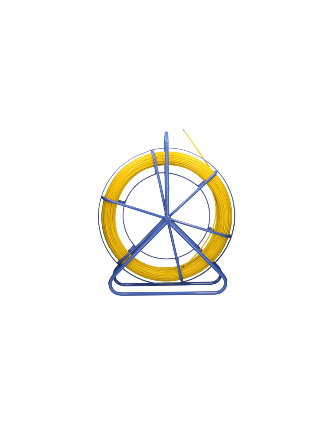 Włókno szklane do przeciągania kabli Extralink 3.8mm 50m Jako pilot do przeciągania kabli zastosowano 50-metrowe włókno szklane Fiber Reinforced Plastic (FRP) o średnicy 3,8 mm , wyposażone w unikalny kołowrotek umożliwiający wygodne rozmieszczenie. Włókno to jest wysoce elastyczne i odporne na zginanie i zrywanie, pokryte żółtą osłoną z tworzywa PE, która służy jako dodatkowa osłona i zapewnia dobrą smarowność. Ten malowany proszkowo niebieski stojak jest wyposażony w ręczną blokadę do zabezpieczenia bębna i specyficzne "oczko" do prowadzenia włókna . Stojak jest specjalnie zaprojektowany, aby zapewnić efektywny transport, przechowywanie i wykorzystanie. Włókno jest wyposażone w głowicę prowadzącą na końcu. Zastosowanie pilota Extralink Przewlekanie kabli między studzienkami telekomunikacyjnymi Układanie kabli pod drogami Montaż w sufitach podwieszanych Oczyszczanie i udrażnianie rur i kanalizacji Wprowadzanie okablowania do rur osłonowych