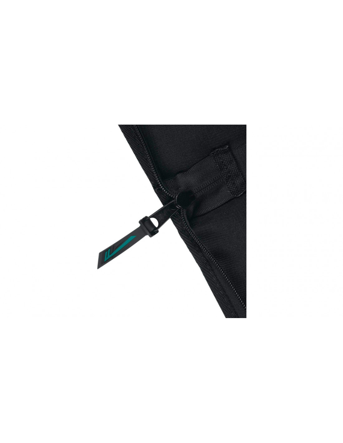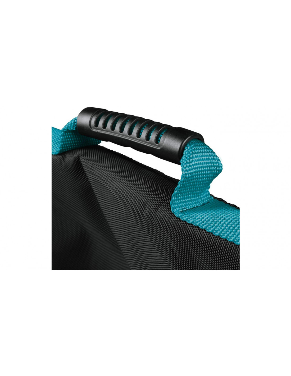 Pokrowiec posiada wygodny, ergonomiczny uchwyt oraz pasek na ramię