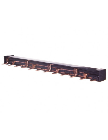 Seria ACTI9 posiada szeroką ofertę aparatury elektronicznej. W jej asortymencie dostępne są m.in. licznik energii elektrycznej, amperomierz, gniazdo modułowe i licznik czasu pracy. Można tam również znaleźć szynę łączeniową, której powyższy model posiada trzy bieguny. Szyna jest dostosowana do czterech urządzeń. Osprzętu nie należy stosować do sprzętu z torem N i ze stykami pomocniczymi. Jego długość wynosi 210 mm. Wielkość odstępów to 18 mm. Przekrój mierzy 16 mm?. Znamionowy prąd ciągły szyny wynosi 100 A, a znamionowe napięcie pracy sięga 500 V. Rodzaj połączenia elektrycznego następuje poprzez piny lub sztyft. Szyna posiada izolację. Jej producent - firma SCHNEIDER ELECTRIC plasuje się w rankingu światowych liderów w rozdziale średniego i niskiego napięcia oraz dystrybucji typu ULTRATERMINAL, zasilaniu awaryjnym, automatyce, zabezpieczeniu budynków, a także w sterowaniu przemysłowym i produkcji czujników maszyn seryjnych. Dzięki licznym testom sprawdzającym klienci tej firmy mogą mieć pewność najwyższej jakości produktów i całkowitego ich bezpieczeństwa.