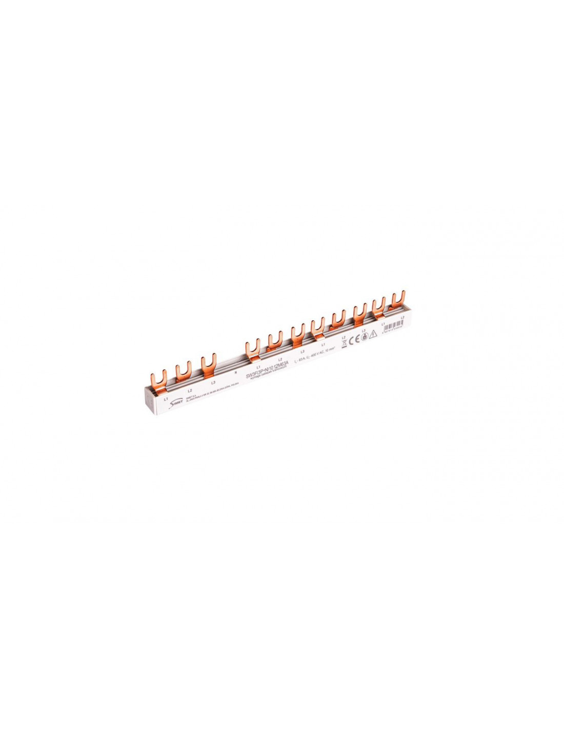 Szyna prądowa łączeniowa - widełkowa 3-fazowa 63A 12 modułów 10 mm² pod zabezp. różnicowo-prądowe SW3F(3P+N) 10 12M63A 81992206