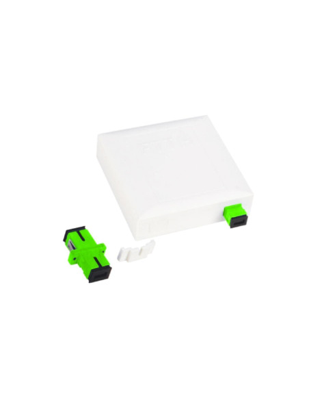 Naścienne gniazdo światłowodowe umożliwia organizację do 4 włókien optycznych. Przeznaczone jest do instalacji wewnętrznych. Wyposażone w 2 porty SC simplex / LC duplex.