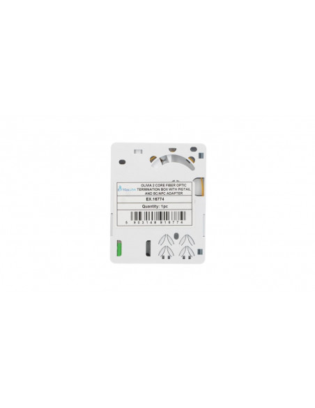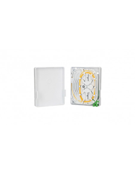EXTRALINK OLIVIA 2 CORE puszka światłowodowa Puszka światłowodowa OLIVIA 2 CORE służy do łączenia i zakańczania wewnętrznych kabli światłowodowych z pigtailami. Puszka jest wykorzystywana w instalacjach naściennych lub stacjonarnych. Posiada 2 wyjścia. Cechy Zdejmowana klapka przednia, pyłoszczelna Nadaje się do wielu typów adapterów stosowanych w sieciach światłowodowych Łatwa w montażu i demontażu Możliwość zastosowania adapterów światłowodowych SC/APC.