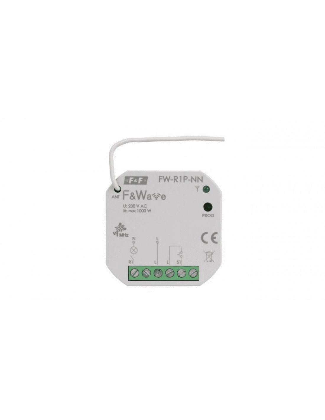 Radiowy pojedyńczy przekaźnik wielofunkcyjny, do instalacji bez przewodu neutralnego FiWave FW-R1P-NN
