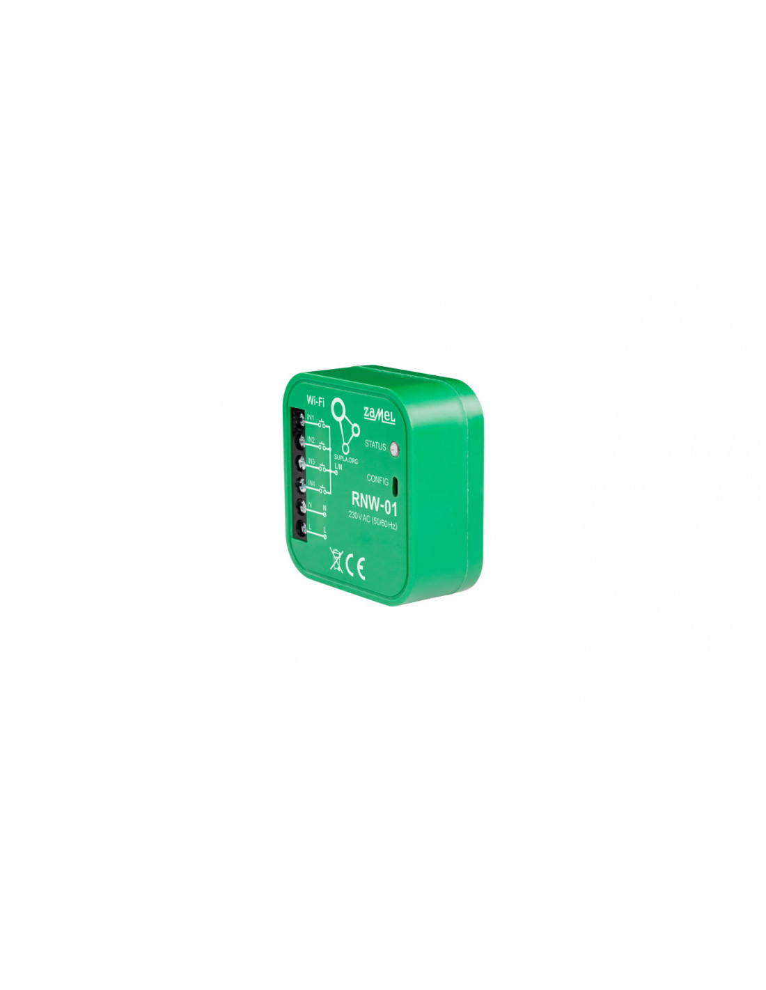 RNW-01 – Interfejs 4 wejść SUPLA Przeznaczony jest do realizacji takich funkcji jak zdalne załączanie / wyłączanie oświetlenia i urządzeń, zamykanie / otwieranie rolet okiennych i bram garażowych. Przeznaczony jest do montażu w puszkach podtynkowych (minimum Ø 60 mm) pod istniejącym osprzętem. Pozwala to na wykorzystanie osprzętu elektroinstalacyjnego dowolnego producenta i nie powoduje ograniczeń w zakresie designu i charakteru wnętrz. Nadajnik posiada cztery wejścia wyzwalane napięciem 230 V AC. Wyzwalanie jest realizowane poprzez zwarcie odpowiedniego wejścia z potencjałem fazy.
