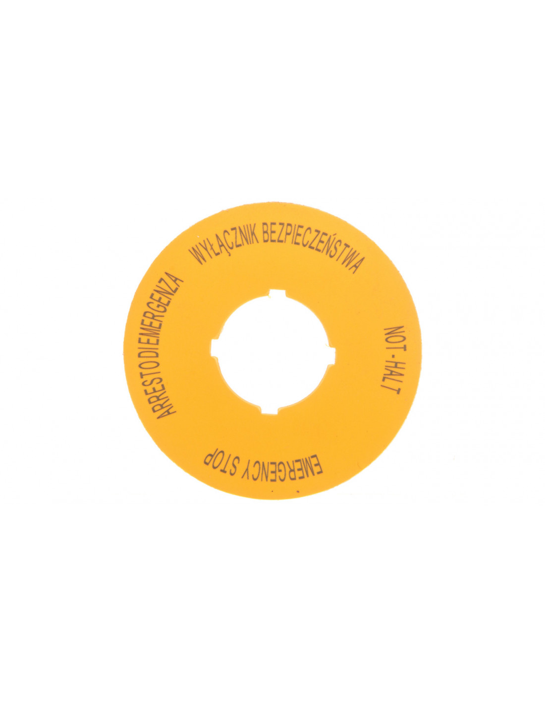 Tabliczki i szyldy opisowe Tabliczka opisowa żółta okrągła fi90 EMERGENCY STOP (DE, GB, NL, F) M22-XAK3 216467 EATON SKU: 0001-00001-62502 67,05 zł 54,52 zł brutto netto DO KOSZYKA