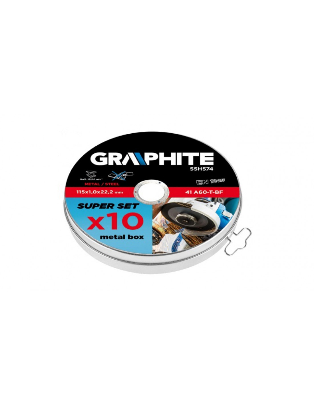 Tarcze do cięcia metalu GRAPHITE o średnicy zewnętrznej 115 mm, dzięki zaawansowanej konstrukcji i redukcji grubości pozwala znacząco skrócić czas cięcia. Zapewnia wysoki poziom bezpieczeństwa pracy dzięki zgodności produktu z normą EN12413.