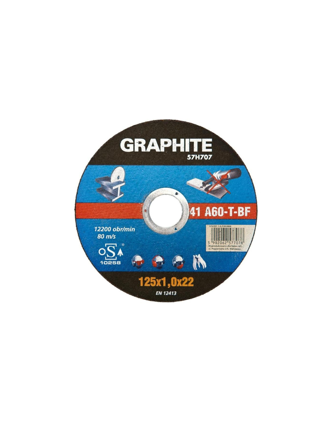 Tarcza do cięcia metalu GRAPHITE (nr ref. 57H700) o średnicy zewnętrznej 125 mm, dzięki zaawansowanej konstrukcji i redukcji grubości pozwala znacząco skrócić czas cięcia. Zapewnia wysoki poziom bezpieczeństwa pracy dzięki zgodności produktu z normą EN12413.