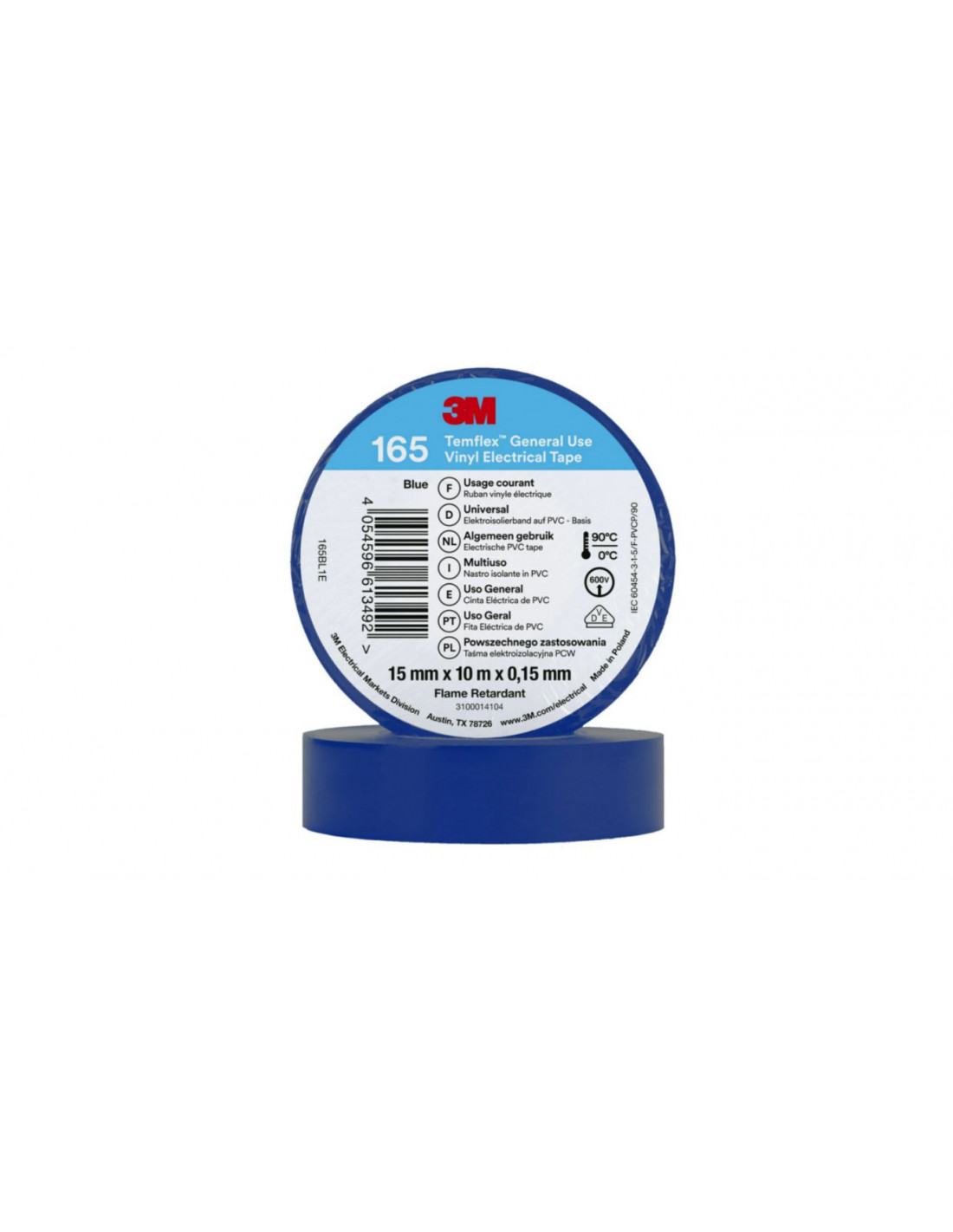 Taśma izolacyjna 15mm x 10m PVC Temflex 165 niebieska 7100184724