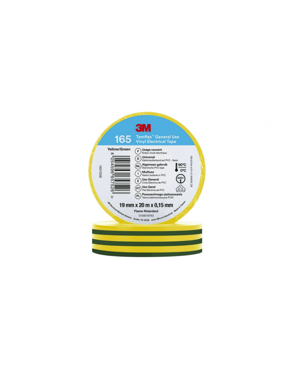 Taśma izolacyjna 19mm x 20m PVC Temflex 165 zielono żółta 7100222493