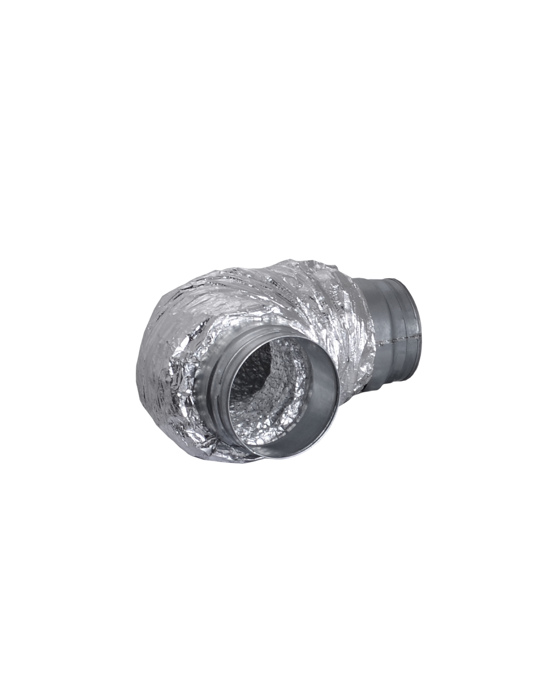 Elastyczny tłumik akustyczny SLESD wykonany jestz perforowanego przewodu ALUDUCT AD-L. Zastosowana izolacja ma grubość 25 mm i osłonięta jest aluminiowo-poliestrowym płaszczem o grubości 45 mikronów. Połączenie tłumika następuje za pomocą metalowych kołnierzy pełniących rolę nypla. Dostępne są w dwóch długościach 500 mm i 1000 mm.