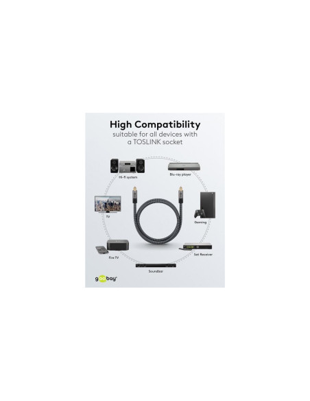 Seria Goobay Plus z wtyczkami w smukłej, eleganckiej metalowej obudowie w kolorze Sharkskin Grey. Optyczny kabel TOSLINK zapewnia superszybką transmisję sygnałów audio całkowicie bez zakłóceń - dla absolutnie synchronicznej reprodukcji dźwięku i obrazu za pośrednictwem systemów kina domowego.