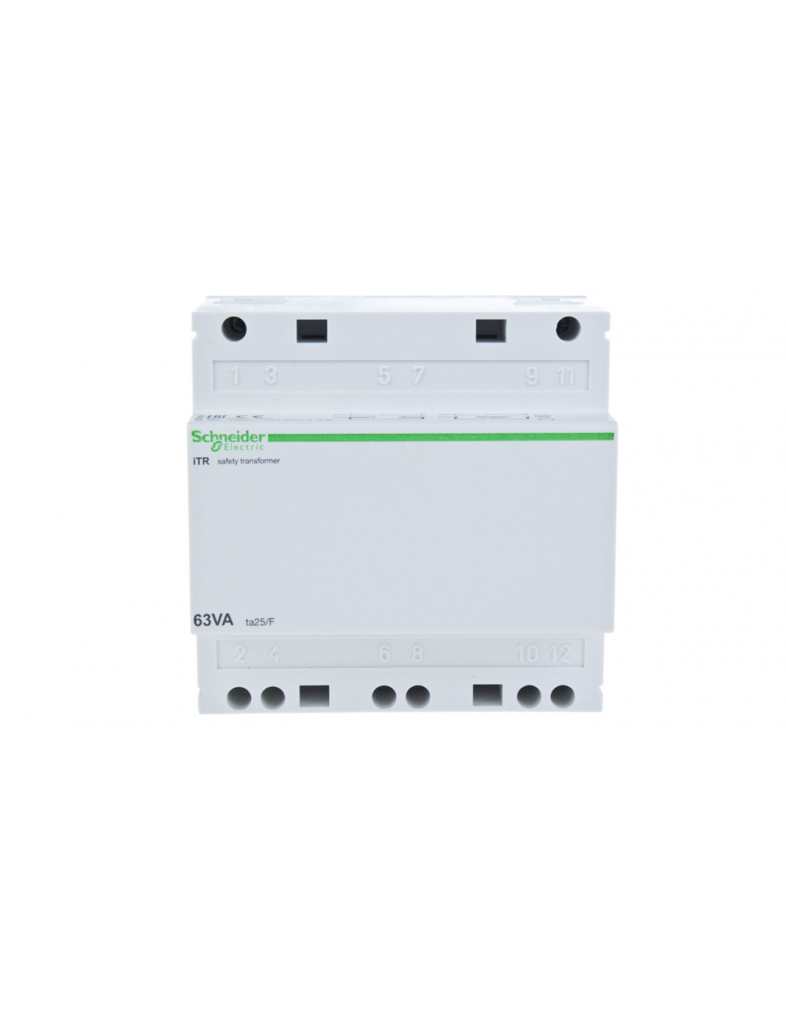 SCHNEIDER ELECTRIC jest firmą specjalizującą się w produkcji wysokiej klasy aparatury przeznaczonej do sterowania zasilaniem elektrycznym. Jednym z urządzeń cieszących się największą popularnością jest transformator bezpieczeństwa. Powyższa jego wersja ma długość 60 mm, szerokość 90 mm oraz wysokość wynoszącą 89 mm. Jej szerokość została również wyrażona liczbą modułów, których aparat ma 5. Urządzenie posiada ochronę przeciwpożarową. Jest dostępne w wersji modułowej, co dodatkowo ułatwia jego montaż. Napięcie pierwotne wynosi 230 V. Napięcie wtórne może sięgać od 12 V do 24 V. Maksymalna moc wyjściowa to 63 W. Prąd strony wtórnej wynosi od 2,6 A do 5,25 A. Transformator umieszczono w kolekcji Acti 9, która zawiera wysokiej jakości urządzenia wytworzone w oparciu o najnowsze technologie, dzięki czemu artykuły te mogą pracować zarówno ze starszymi urządzeniami, jak i tymi nowszej generacji. Są zatem uniwersalne i dostosowane do potrzeb ich użytkowników.