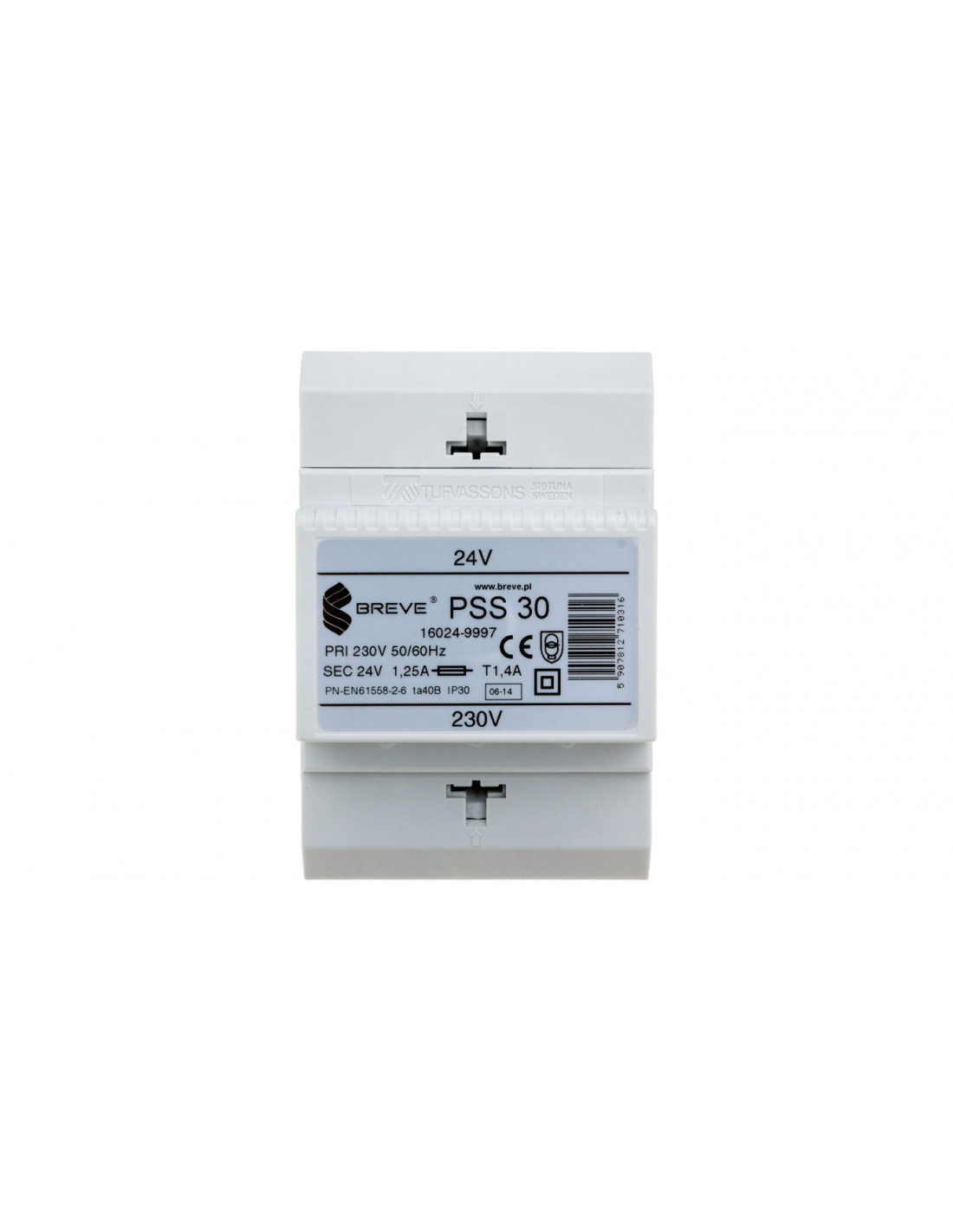 Seria PSS polskiej firmy Breve składa się z wielu transformatorów różnego rodzaju.Jednym z nich jest transformator 1-fazowy przeznaczony do umieszczenia na szynie montażowej. Głębokość urządzenia wynosi 63 mm. Szerokość jest równa 72 mm, natomiast wysokość sięga 110 mm. Produkt jest całkowicie odporny na zwarcie, co zapewnia użytkownikom bezpieczeństwo i przekonuje, że aparatura posłuży dłuższy czas. Produkt jest dostępny jako transformator bezpieczeństwa. Występuje w wersji modułowej, dzięki czemu można go podpiąć do obwodu głównego w znacznie łatwiejszy i szybszy sposób. Aparatura została wykonana zgodnie z IEC 85, z materiału izolacyjnego klasy B. Produkt nie jest jednak całkowicie odporny na działanie wilgoci i zanieczyszczeń, o czym świadczy stopień ochrony IP30. Napięcie pierwotne transformatora sięga 230 V. Napięcie wtórne z kolei jest równe 24 V. Znamionowa moc urządzenia sięga 30 W. Transformator znajduje się w bogatej ofercie firny Breve Tufvassons, która jest obecna na rynku od 1989 roku. Koncern zajmuje się produkcją nie tylko transformatorów, ale także dławików, zasilaczy i regulatorów prędkości wentylatorów.